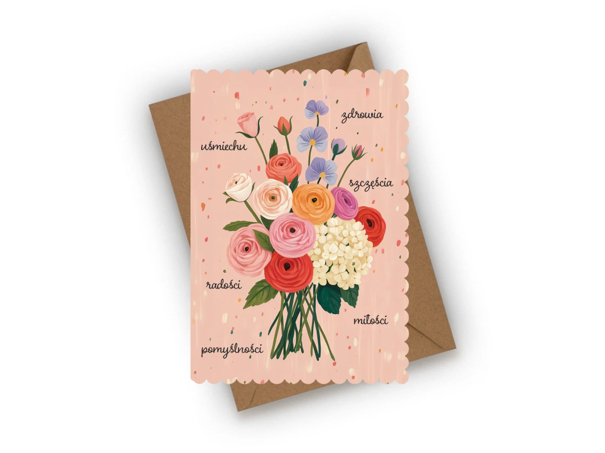 Środek kartki pozostaje pusty, gotowy na Twoje słowa. To właśnie one nadają jej prawdziwą wyjątkowość, zatrzymują emocje i tworzą niezapomniane chwile.