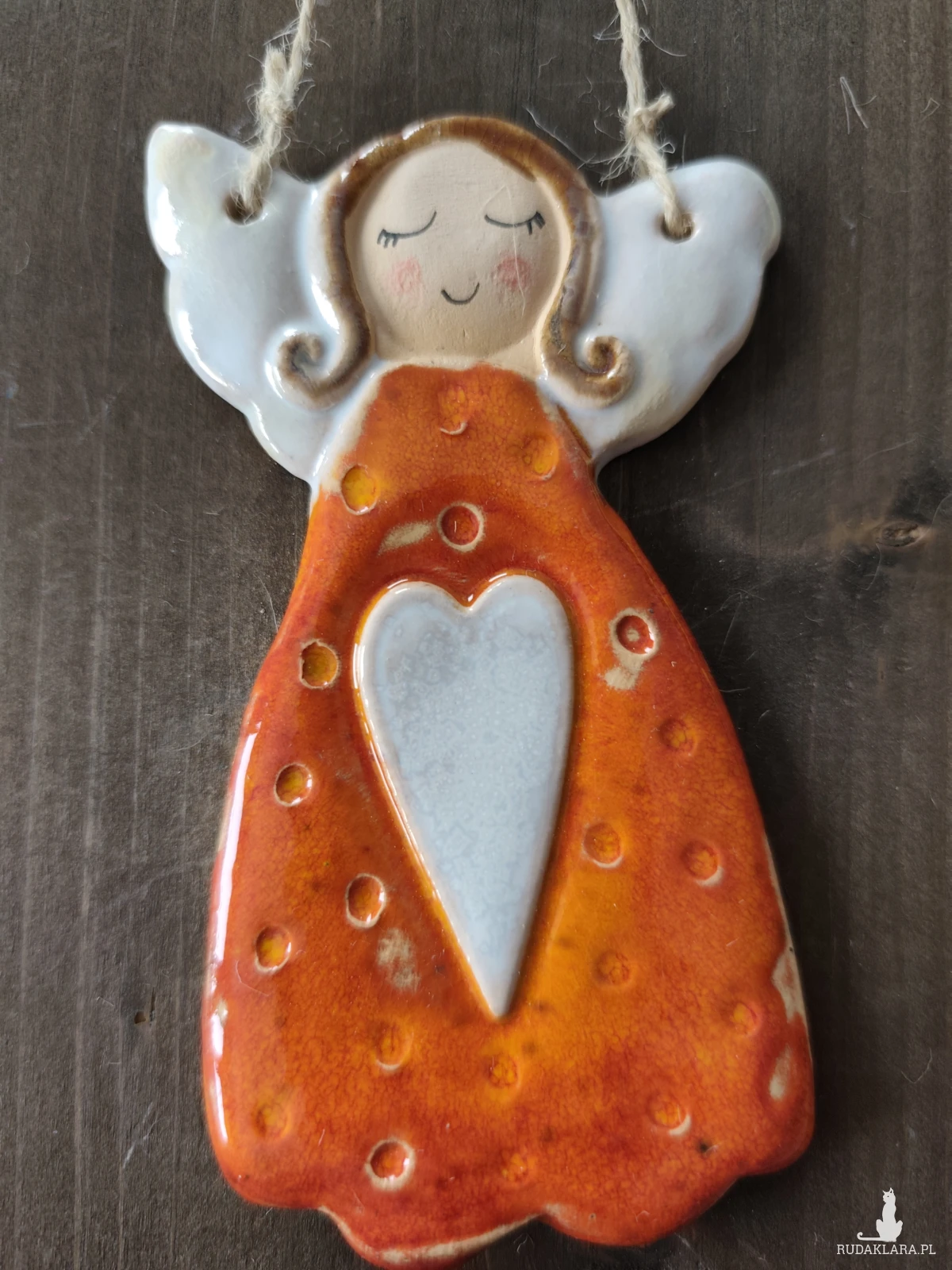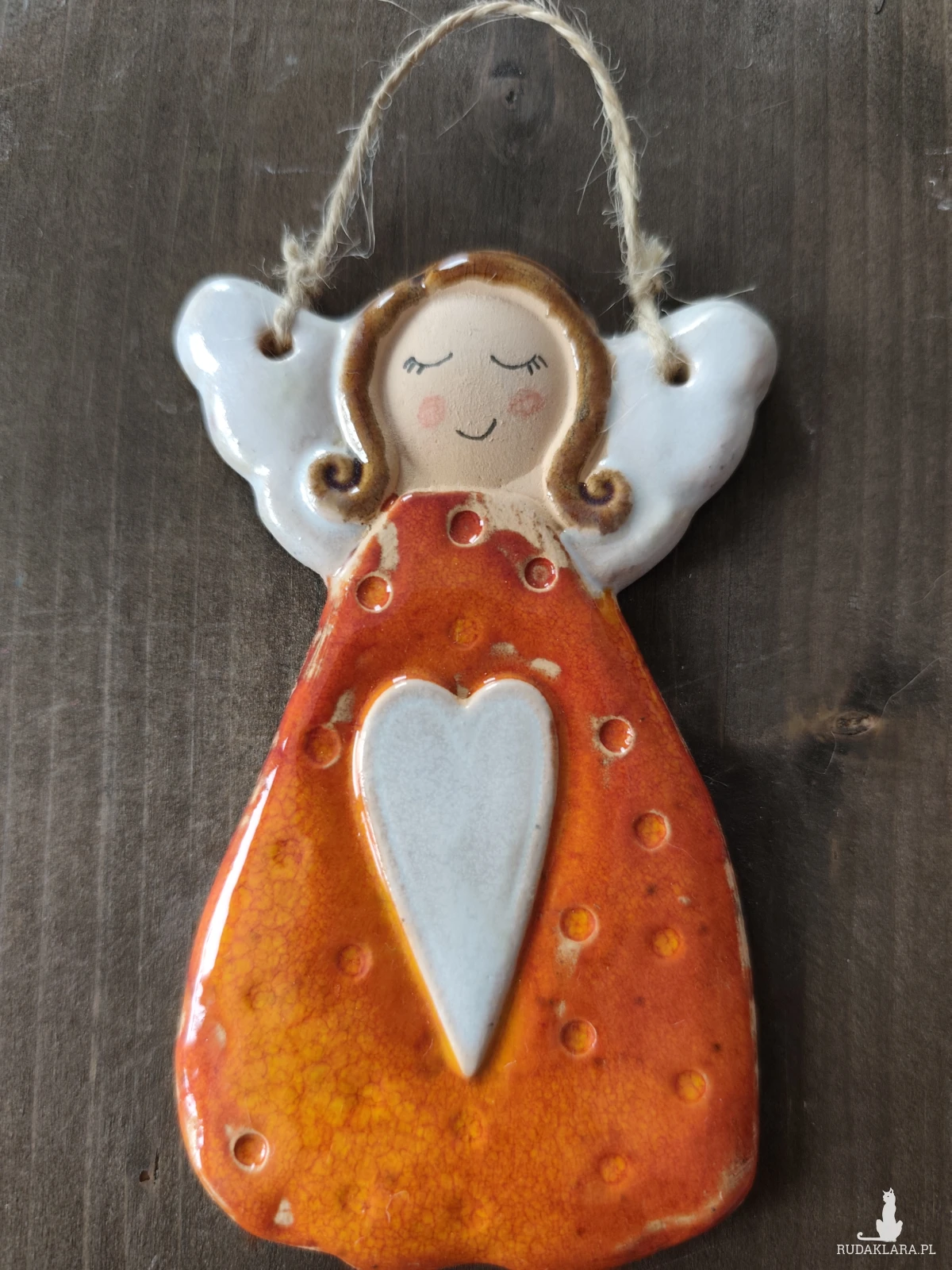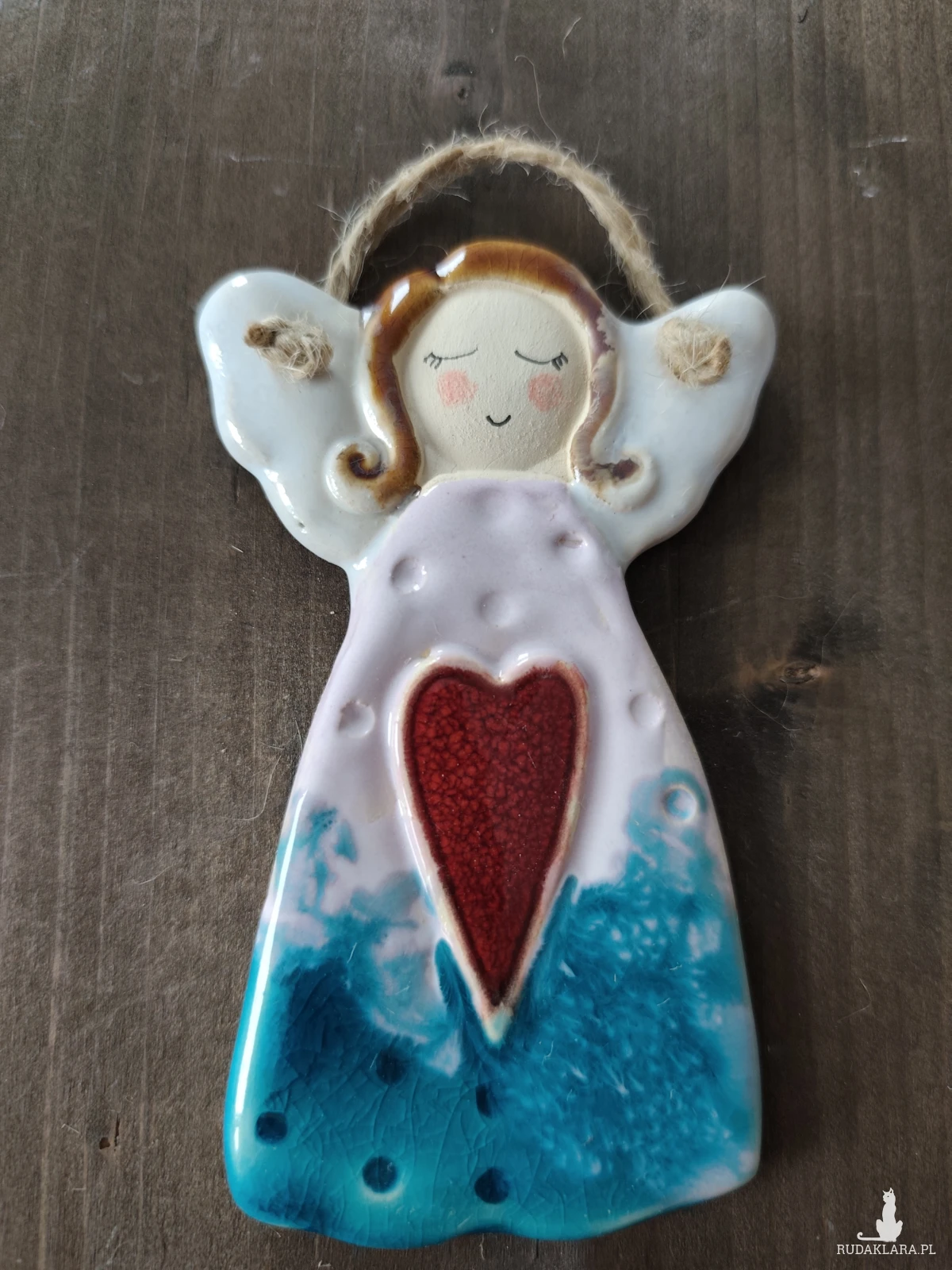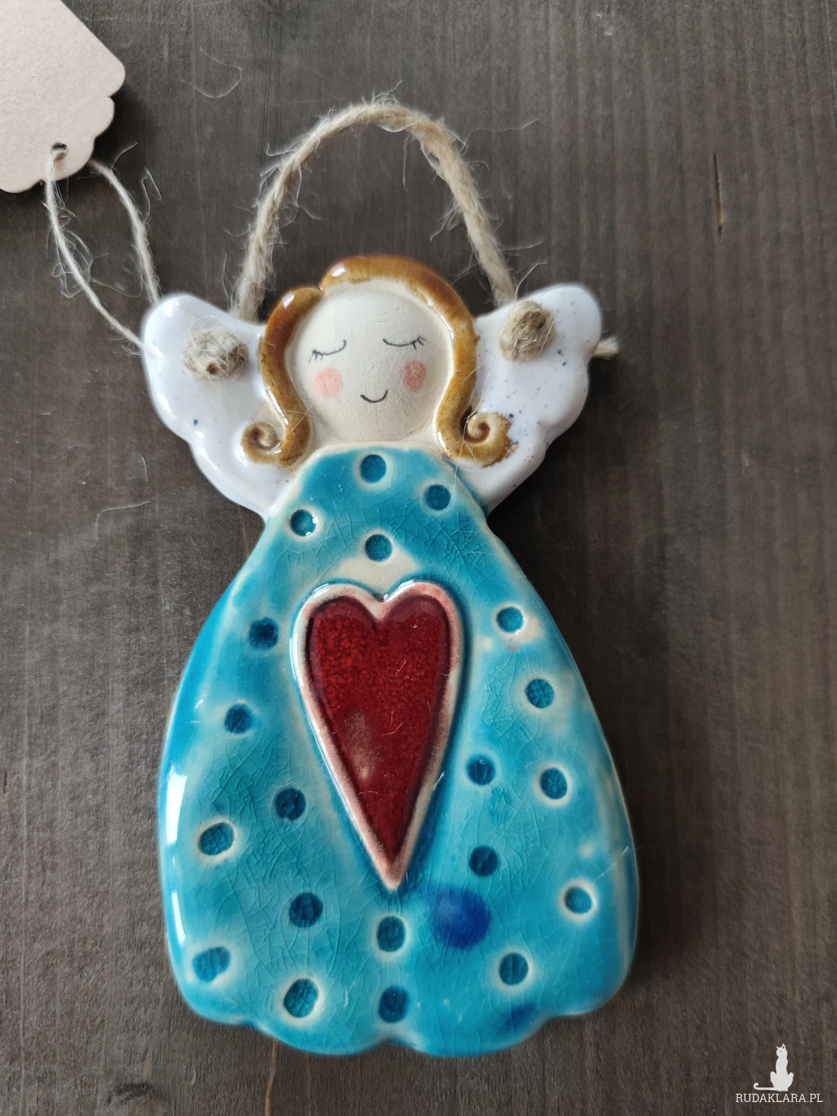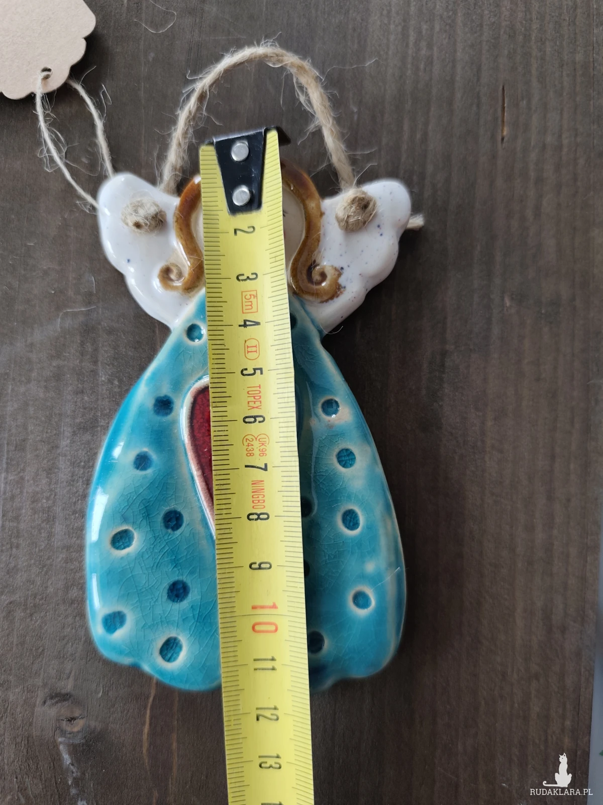 Aniołek ceramiczny wykonany z jasnej gliny, szkliwiony i dwukrotnie wypalany w piecu ceramicznym. polecam