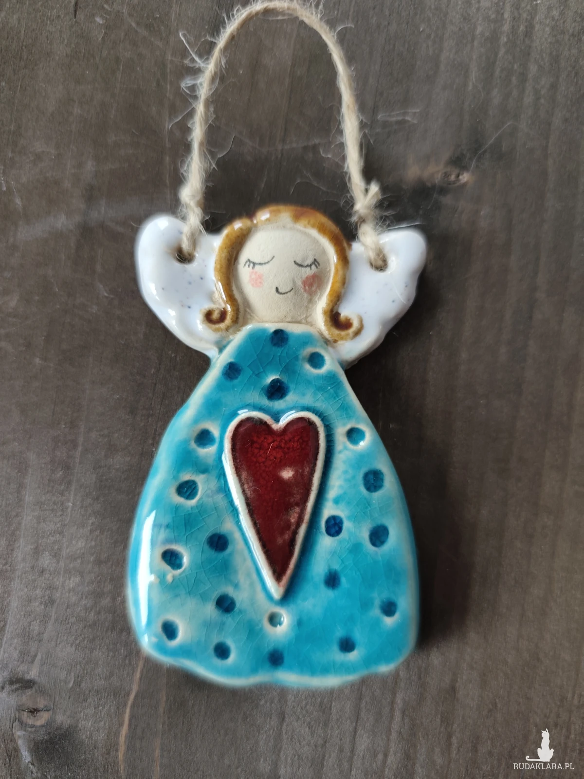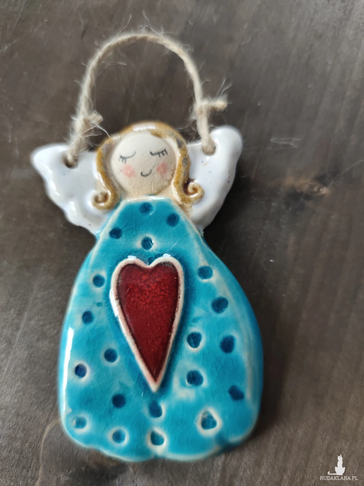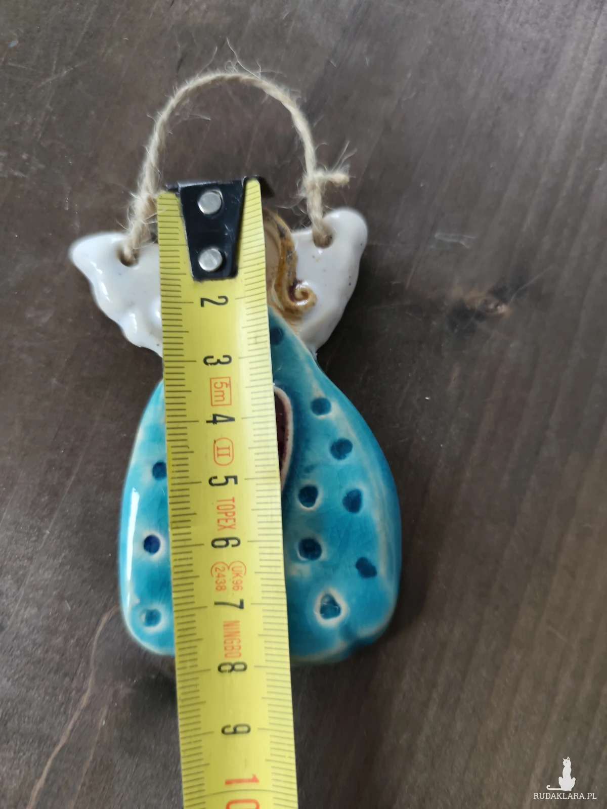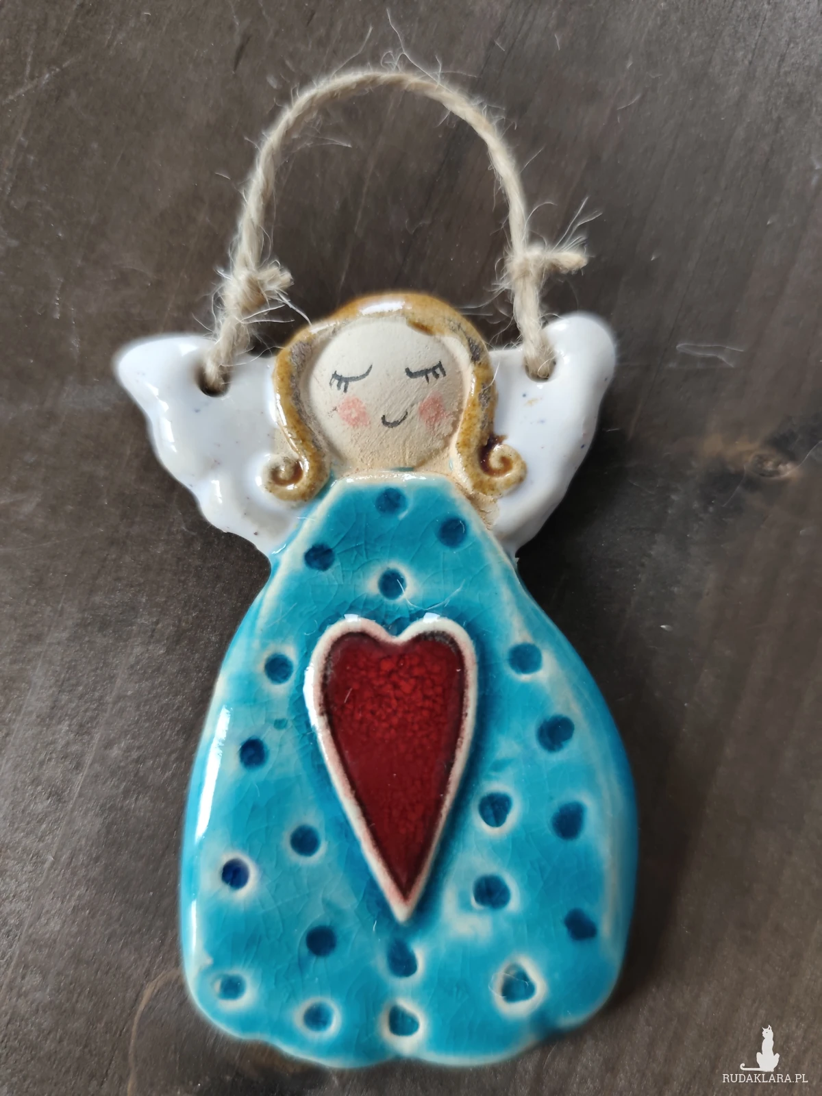 Aniołek ceramiczny wykonany z jasnej gliny, szkliwiony i dwukrotnie wypalany w piecu ceramicznym. polecam