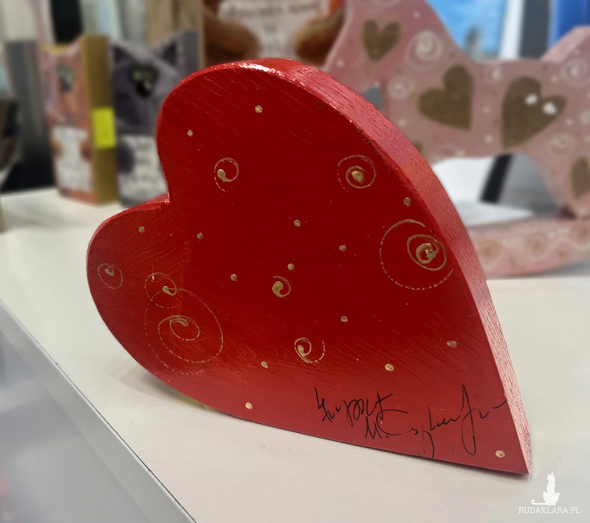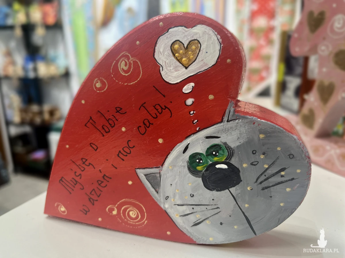 Serduszko miłości "Myślę o Tobie w dzień i noc całą!" -malowane ręcznie, materiał dąb, wymiary 14 x 10 x 2,5 cm
