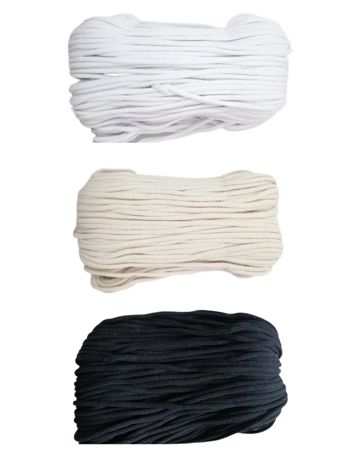 -Materiał; Sznurek bawełniany o średnicy 3mm polskiego producenta-Produkt prać w temperaturze 30stopni celsjusza,wirować z prędkością 800obrotów,suszyć rozłożone na płasko -Produkt należy używać zgodnie z przeznaczeniem -produkt nie przeznaczony dla dzieci poniżej 6 roku życia. - Nie zbliżać do ognia -Sznurek bawełniany polskiego producenta.