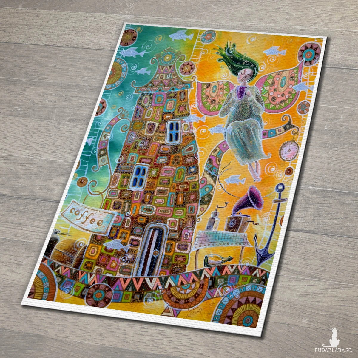 Reprodukcja pracy własnej z serii "Anioły i morze" wykonana na wysokiej jakości papierze satynowanym o gramaturze 200-220 g/m². Sprzedawana bez ramy.