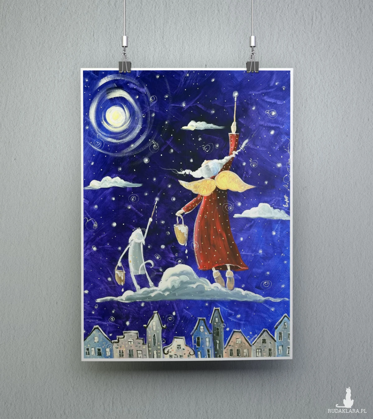 Reprodukcja własnej pracy o tytule "Magiczne gwiazdki marzeń", malowanej oryginalnie farbami akrylowymi na płótnie. Drukowana za pomocą ekologicznych, bezwonnych tuszy pigmentowych EPSON UltraChrome HD Ink, na białym papierze o gramaturze 200-220 g/m². Plakat sprzedawany jest bez ramy.