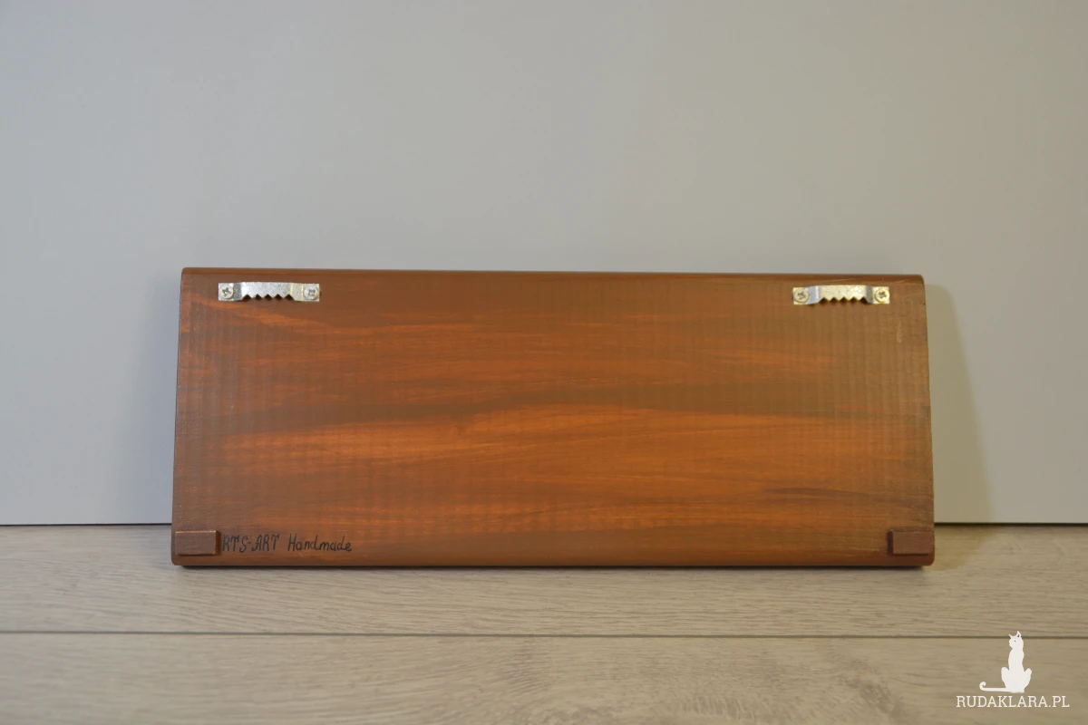 Każdy egzemplarz jest wykonany ręcznie, dzięki czemu jest unikatowy. Drewniana baza jest trwała, lekka i gotowa do zawieszenia.
