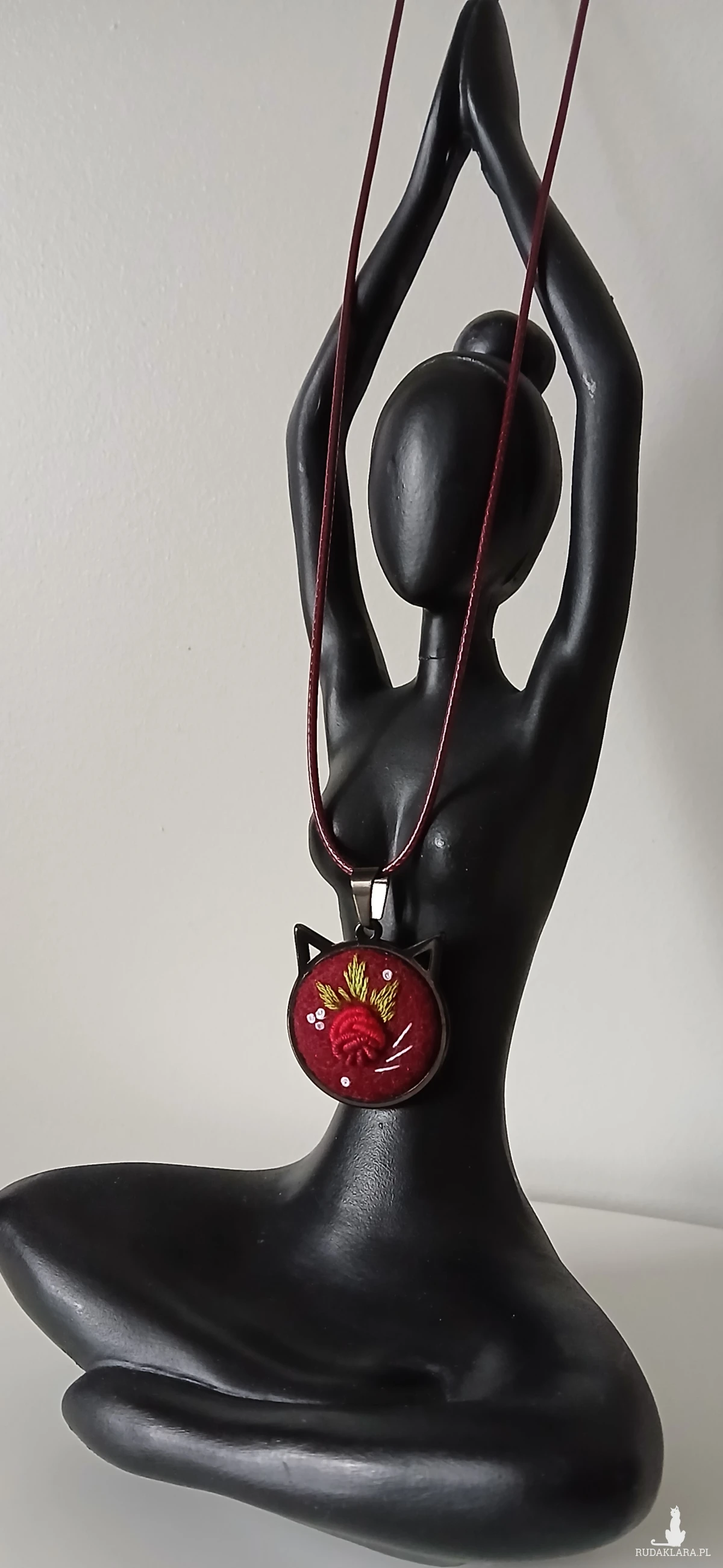 Wisior w spektakularnej formie kota w kolorze bordowym ma niepowtarzalny urok i magię. Poczuj to na własnej skórze i pozwól, by był dla Ciebie ważny.