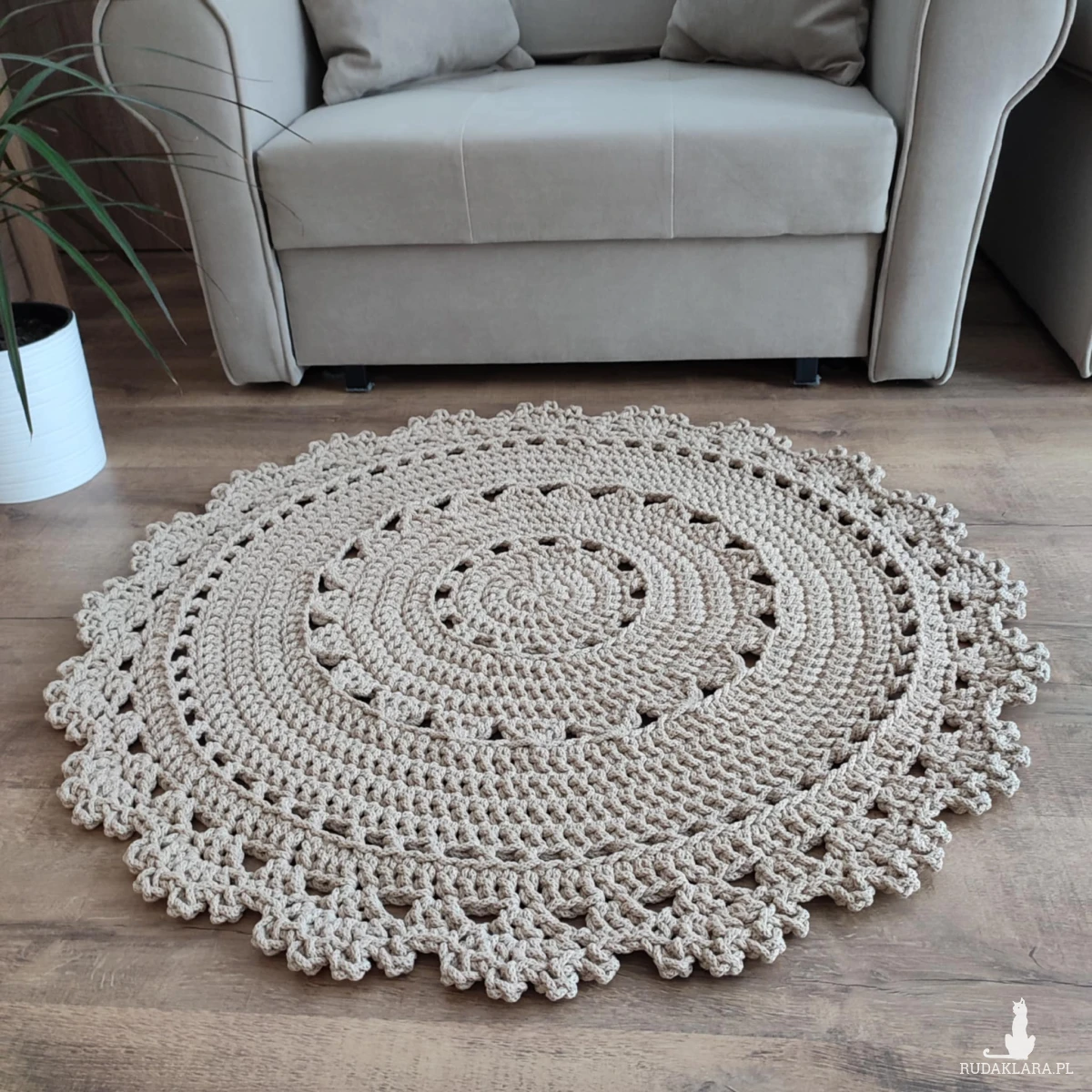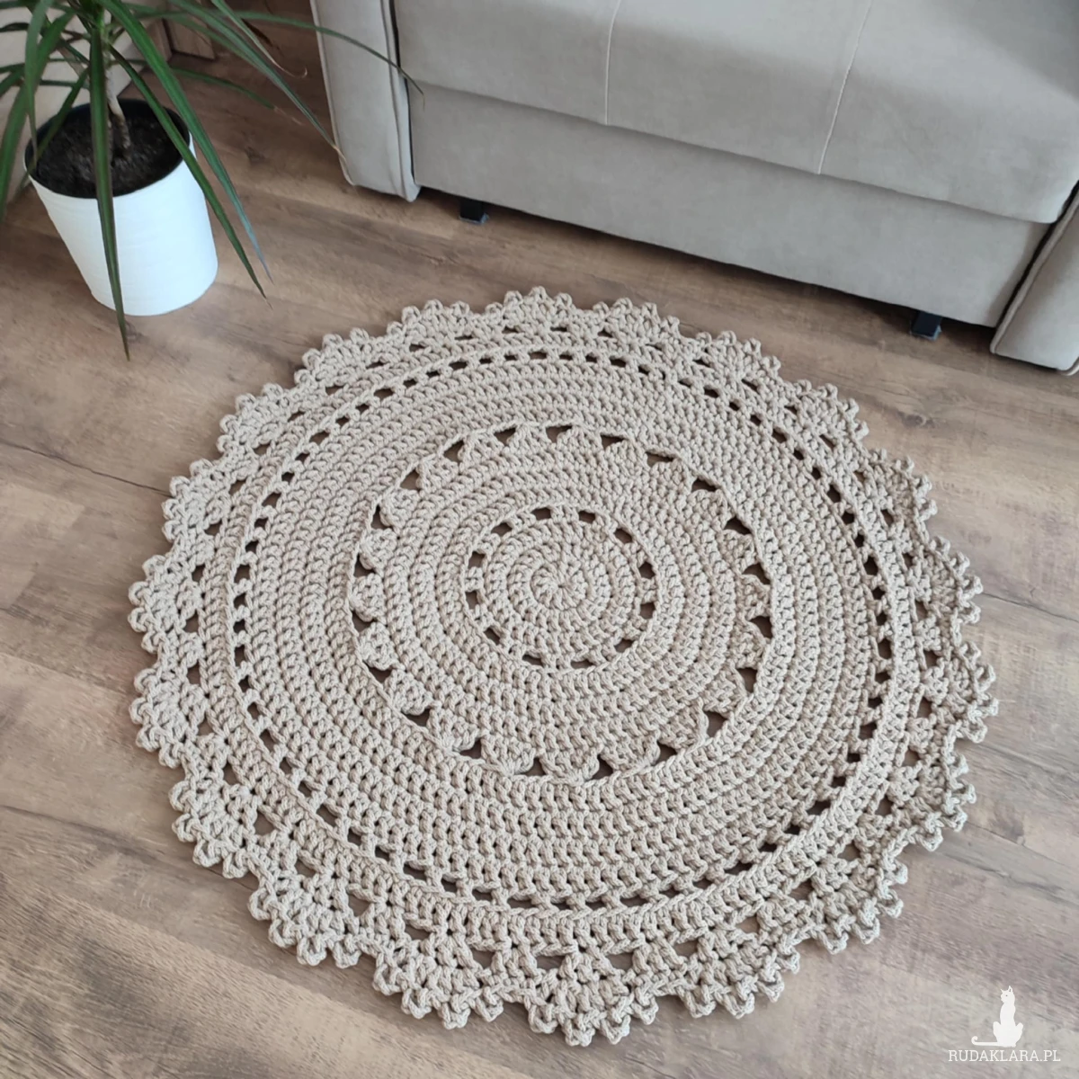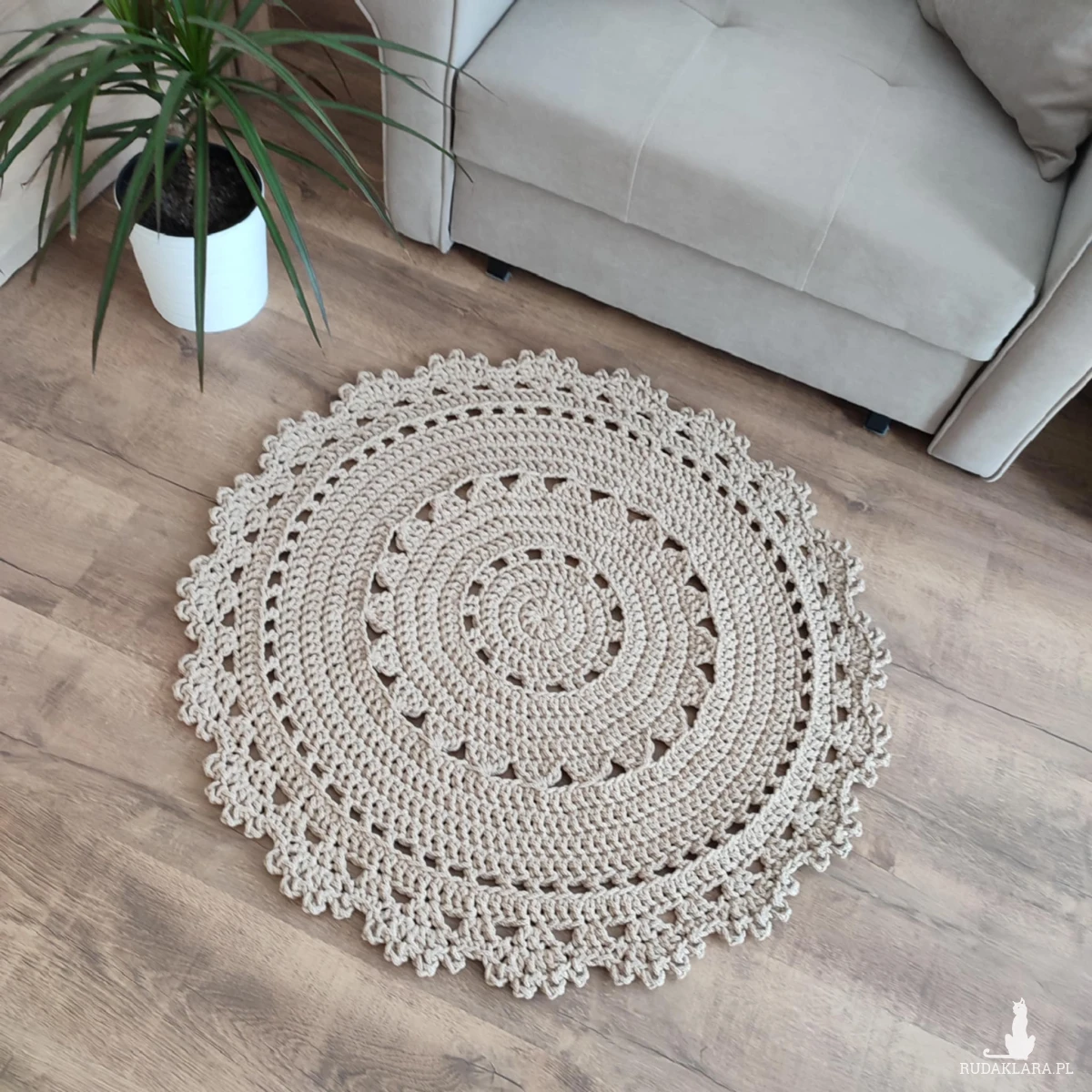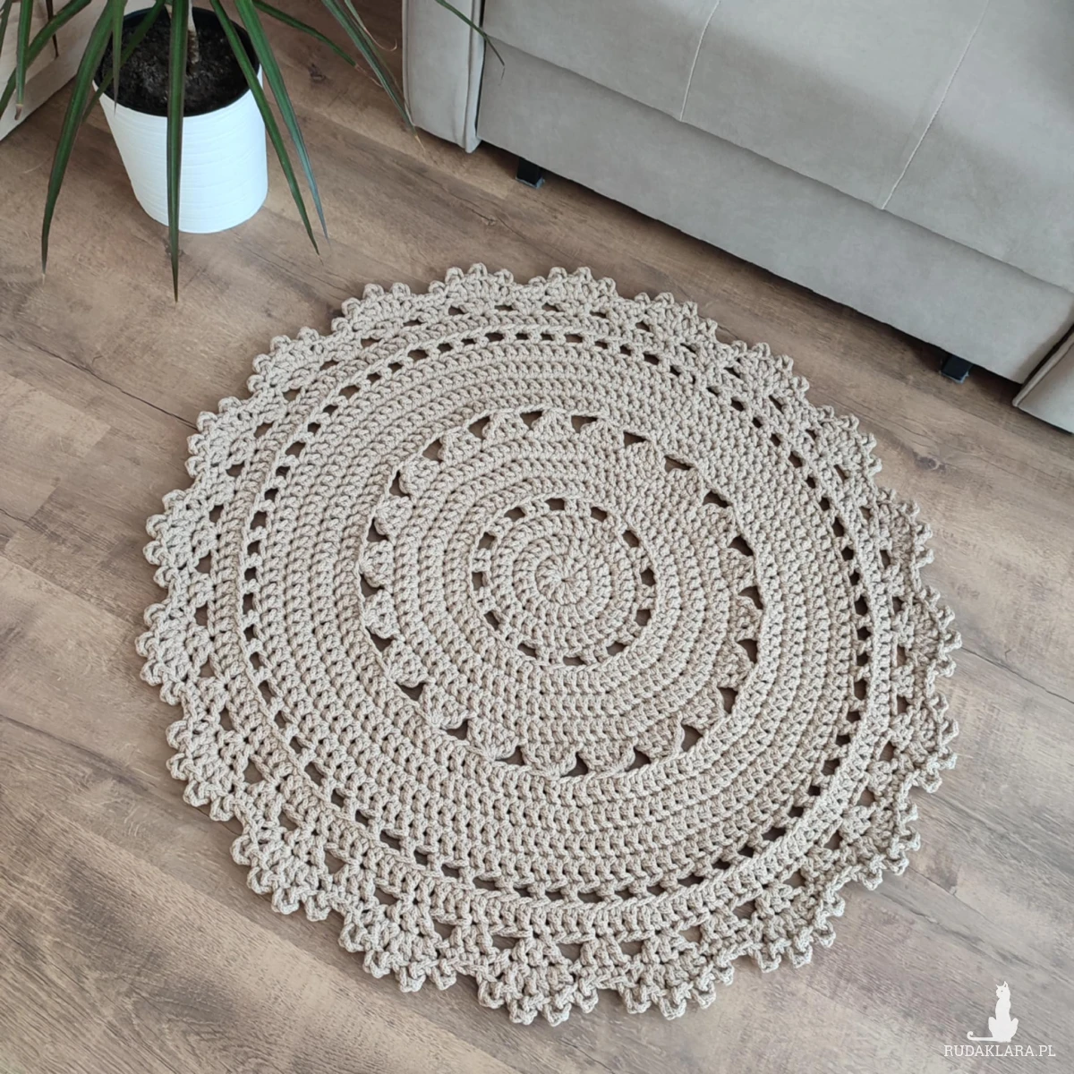 Dywan o średnicy 90cm, wykonany metodą szydełkowania z polskiego sznurka bawełnianego 5mm.