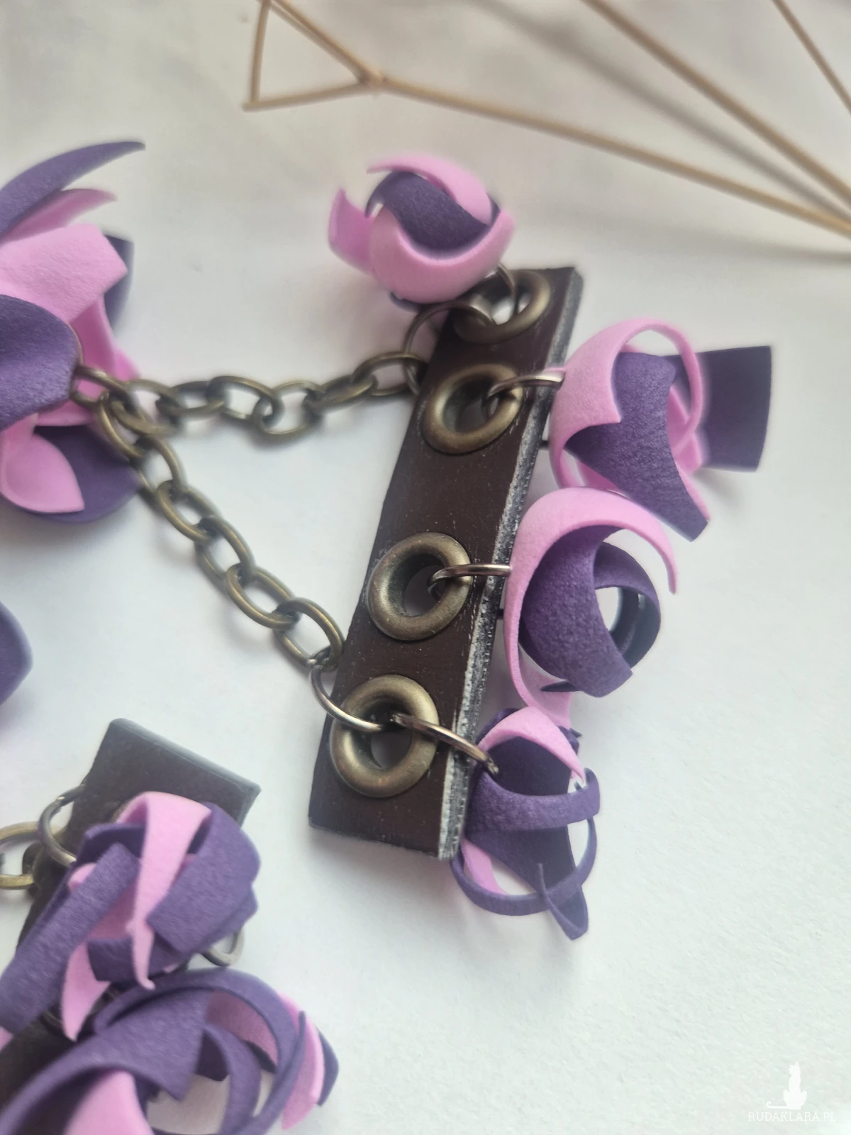 Klipsy fioletowo-brązowe z materiałem skóropodobnym o błędne polecam