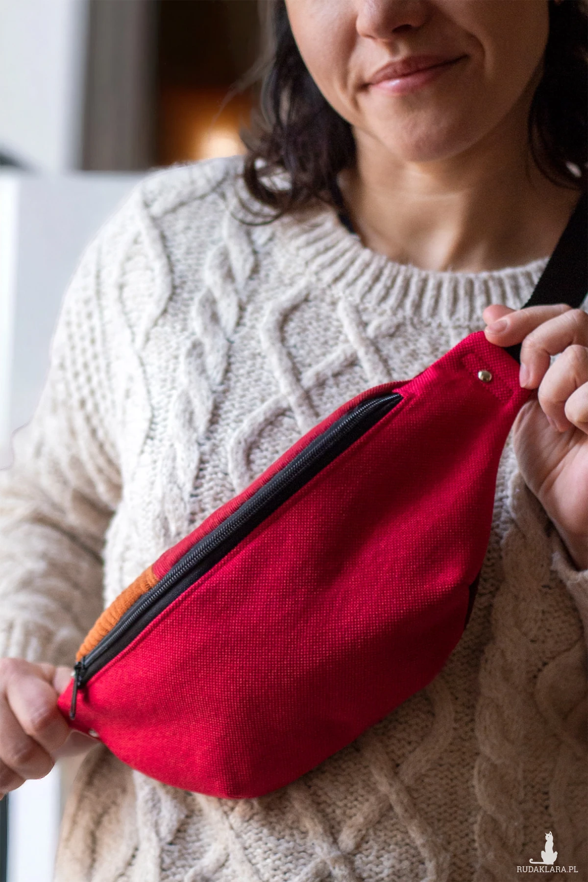 Duża nerka saszetka biodrowa w kolorze czerwonym.