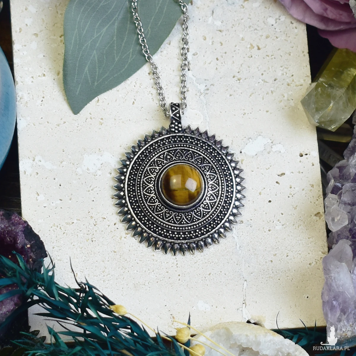 Ręcznie wykonany wisiorek z tygrysim okiem, stworzony z miedzi przy użyciu tradycyjnych technik, a następnie posrebrzony. Tygrysie oko to minerał kojarzony z siłą, odwagą i wewnętrzną równowagą. Pomaga skupić myśli, zwiększa pewność siebie i chroni przed negatywną energią. Jego ciepłe, złoto-brązowe refleksy nadają biżuterii wyjątkowy charakter. Połączenie naturalnego kamienia z rzemieślniczym kunsztem sprawia, że wisiorek jest zarówno stylową ozdobą, jak i osobistym amuletem.