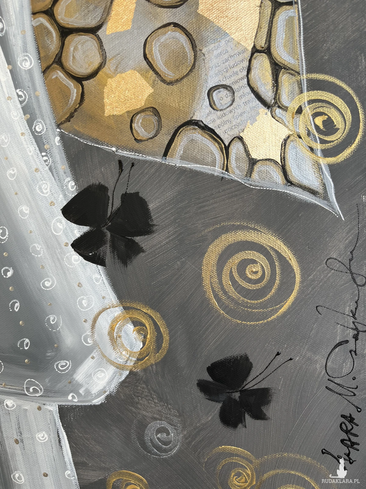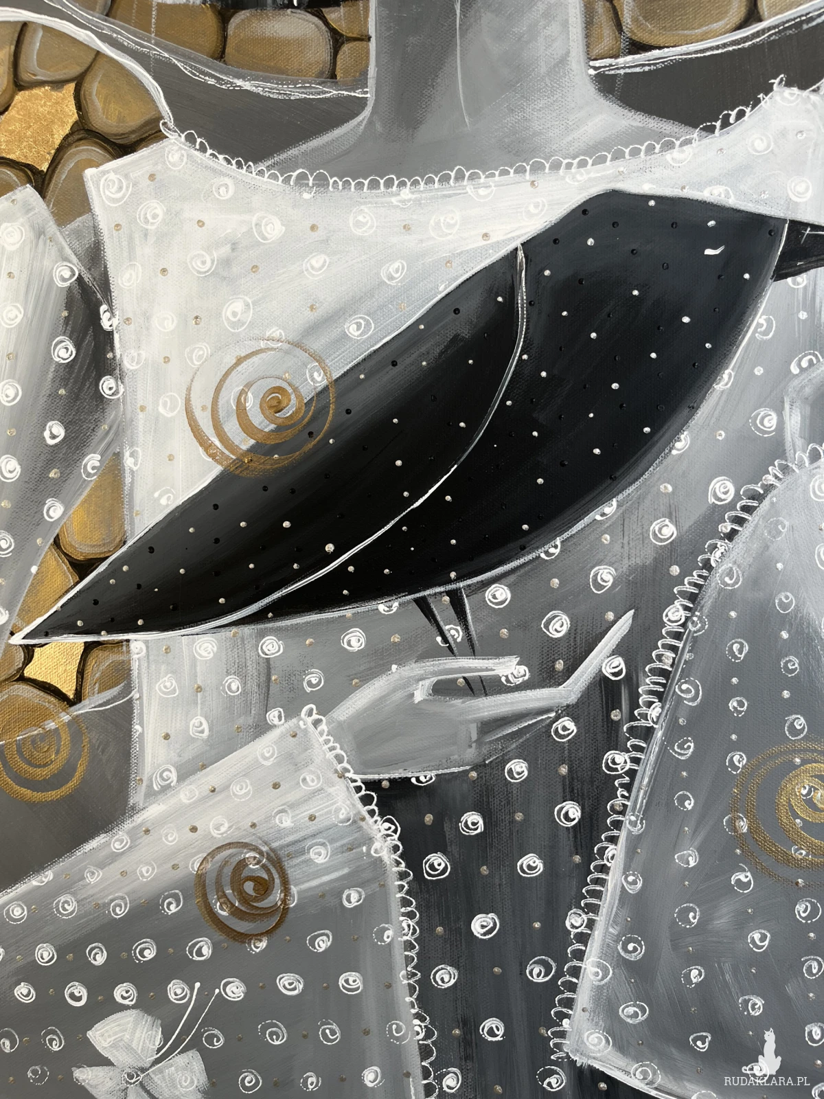 Malowany farbami akrylowymi obraz na płótnie canvas, o wymiarach 100x70 cm, 2026 rok, pod tytułem: "Kontrasty codzienności".
