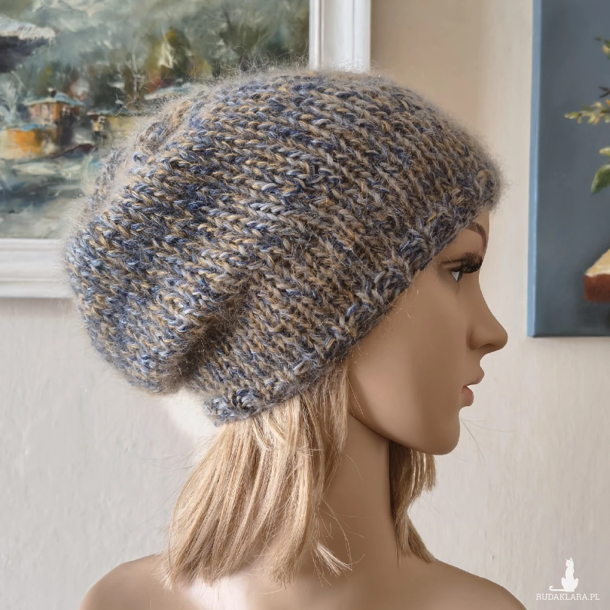Miła, bezszwowa czapka, wykonana ręcznie na drutach poczwórną nitką z indywidualnie dobranych włóczek najwyższej jakości, o składzie: dwie z nich, to najdelikatniejsze, cieńsze od włosa australijskie włóczki moherowo-jedwabne (70% moher, 30% jedwab), trzecia to hiszpańska szlachetna włóczka, o składzie: 30% alpaka, 25% jedwab, 25% virgin wool i 20% akryl), czwarta to hiszpańska wełenka merino 100%. Czapka jest lekka, puchata i bardzo ciepła, a efekt kolorystyczny subtelny i niezwykle twarzowy. Niestety zdjęcia nie oddają miękkości i puszystości włóczek. Polecam dla obwodów głowy 55-58 cm. Dł. czapki - 26 cm. Brak klasycznego ściągacza nie grozi rozciągnięciem czapki Pranie - jak w przypadku wszystkich moich wyrobów - wyłącznie ręczne.