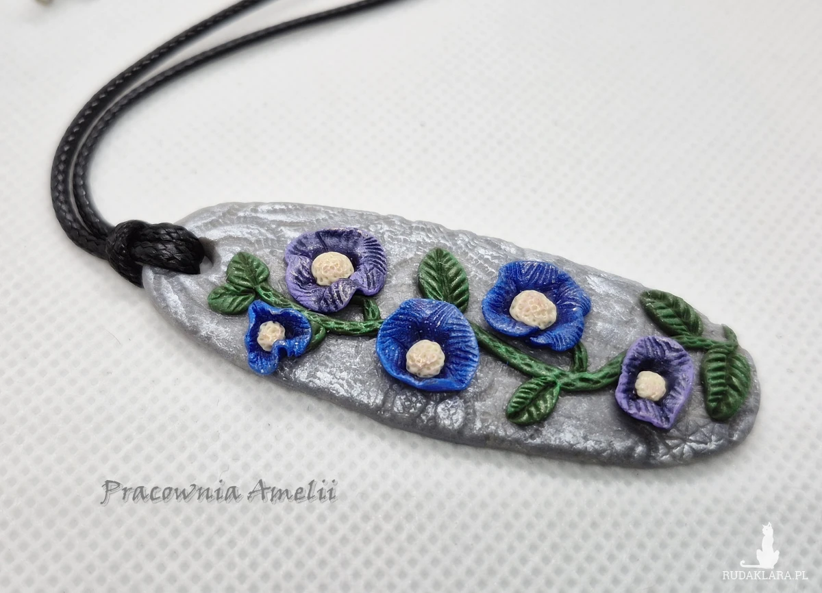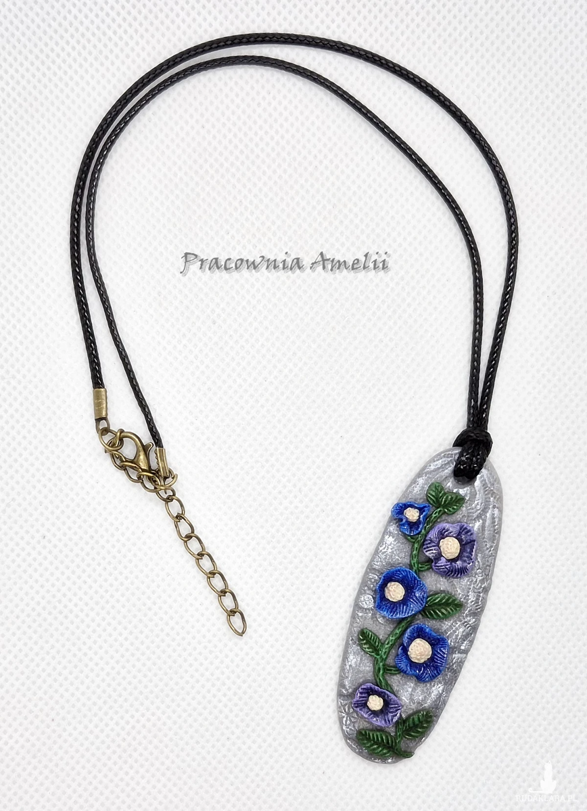 Wisiorek wykonany z gliny polimerowej zawieszony na czarnym powlekanym sznureczku zapinanym na karabińczyk. Projekt własny, wykonany tylko w jednym egzemplarzu. Biżuteria z gliny polimerowej jest trwała i uniwersalna. Idealna na oryginalny prezent w atrakcyjnej cenie.