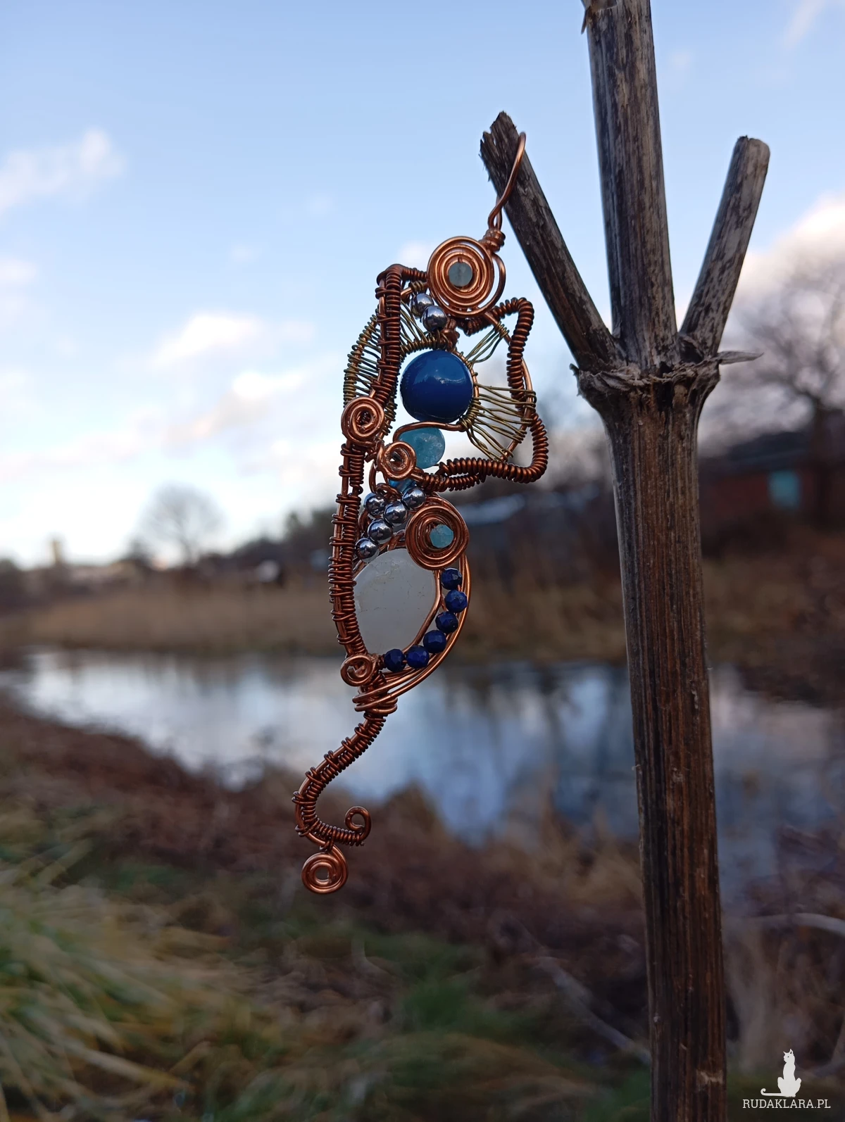 oprawa z miedzi i mosiądzu, efektowna biżuteria boho
