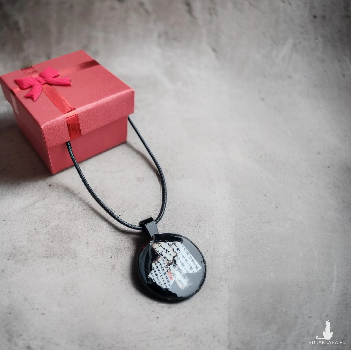 Unikatowy naszyjnik handmade z żywicy – papier i kaligrafia
