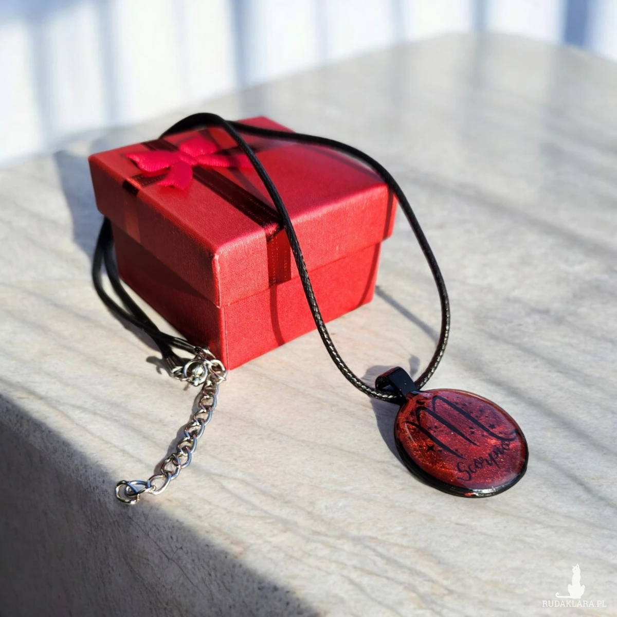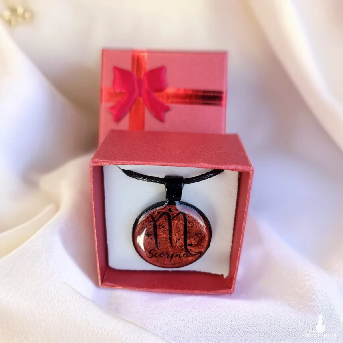 Poznaj wyjątkowy, ręcznie wykonany naszyjnik z żywicy inspirowany znakiem zodiaku Skorpion. To niepowtarzalny talizman, który łączy elegancję, symbolikę astrologiczną i nowoczesny styl. Idealny jako prezent urodzinowy, upominek z okazji świąt lub wyjątkowy dodatek dla osób kochających astrologię oraz unikalną biżuterię.