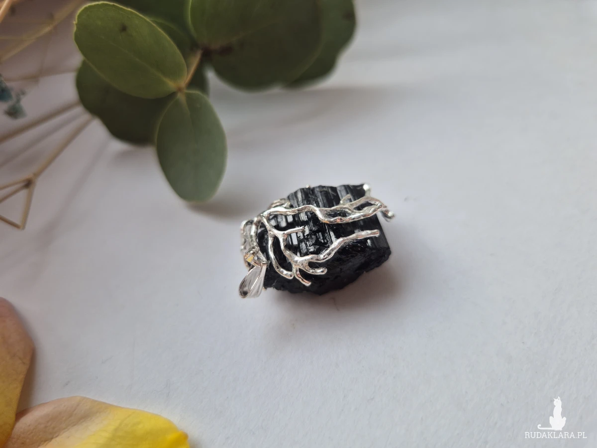 Wisior do zawieszenia na łańcuszek ewentualnie rzemyk sprzedawany jest solo. Turmalin, zwłaszcza czarny (szerl), to kamień o niezwykle silnych właściwościach ochronnych i energetycznych. Uważany jest za "tarczę", która odbija negatywną energię, neutralizuje promieniowanie elektromagnetyczne, redukuje stres oraz uziemia, wspierając wewnętrzną równowagę.