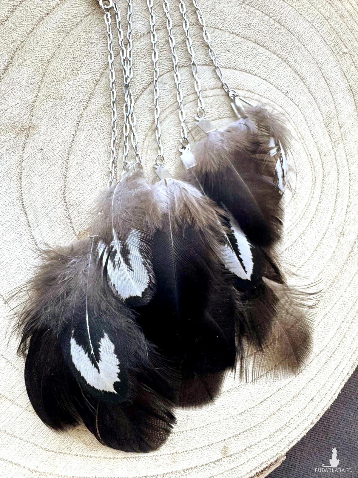 Pióra mogą być łatwopalne, wywoływać alergię u osób uczulonych, biżuteria zawiera drobne elementy i nie jest zabawką, produkt nieodpowiedni dla dzieci poniżej 3 roku życia.