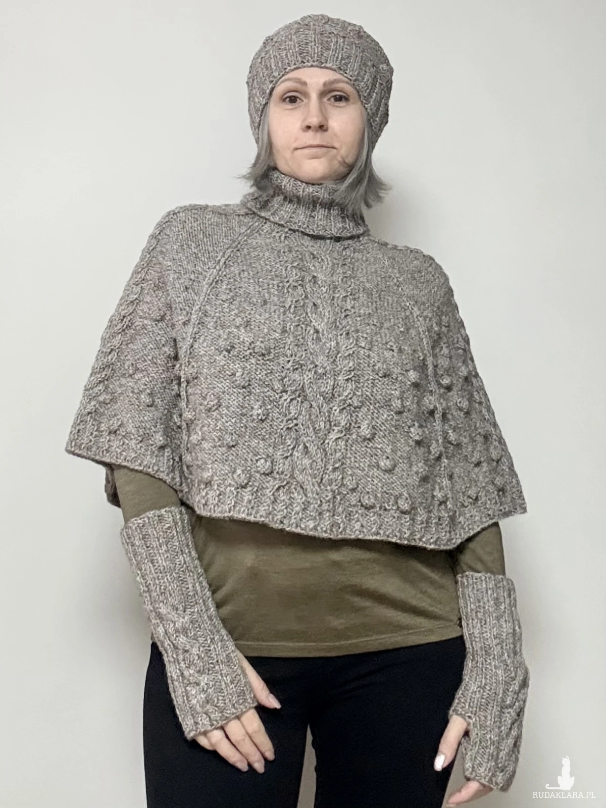 Piękny nietuzinkowy komplet na chłodne,jesienne i wiosenne wieczory, wykonany z przędzy o składzie 25%welna, 75% akryl, miękki, niegryzący, można nosić razem lub łączyć elementy z innymi stylizacjami,co z pewnością wzbogaci garderobę każdej kobiety,która chce mieć w swojej szafie coś unikatowego. Polecam!