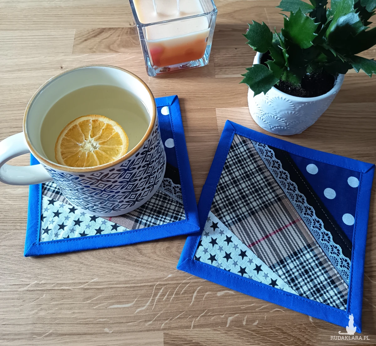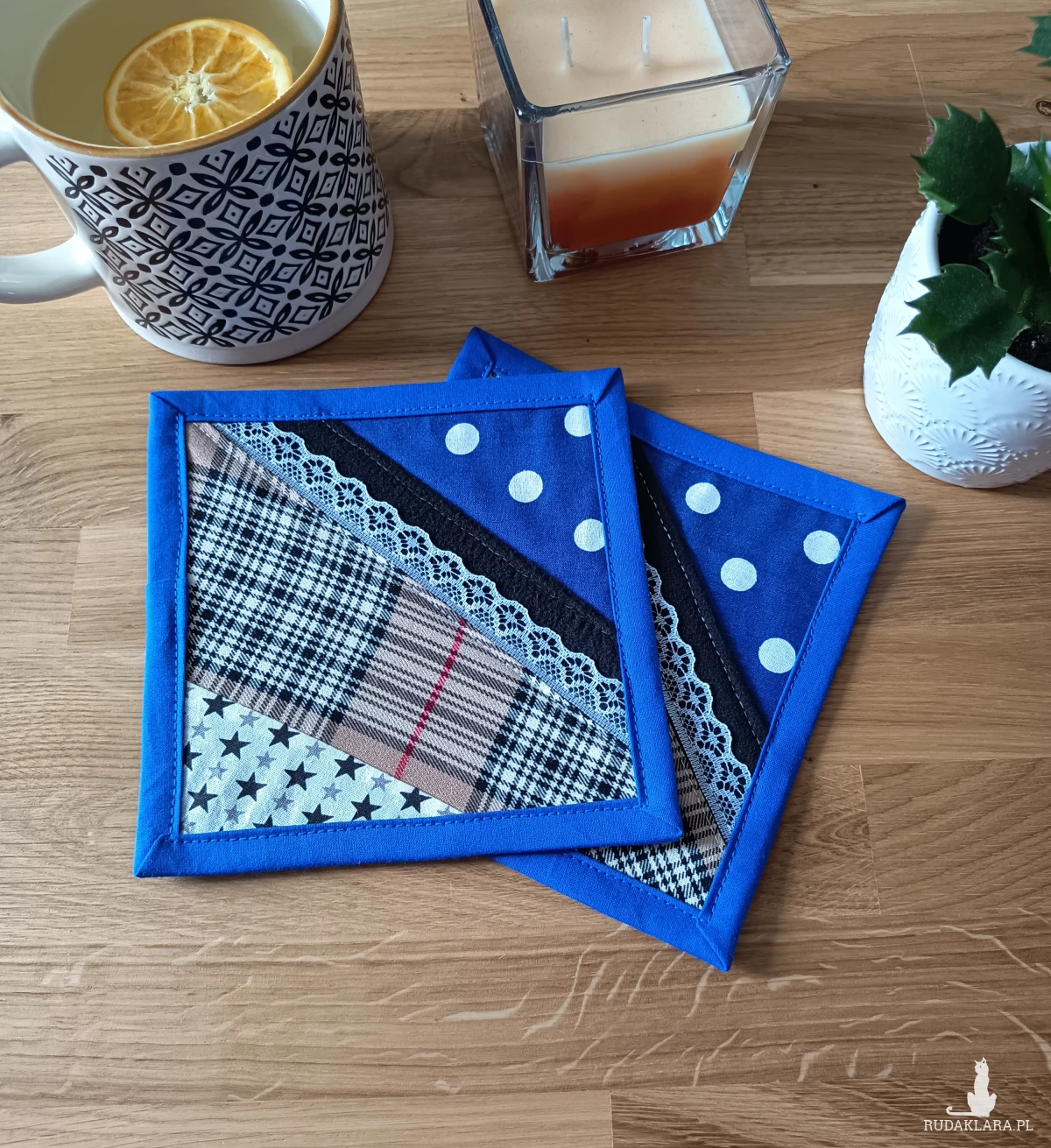 Ręcznie robione podkładki pod kubek – paczworkowe.