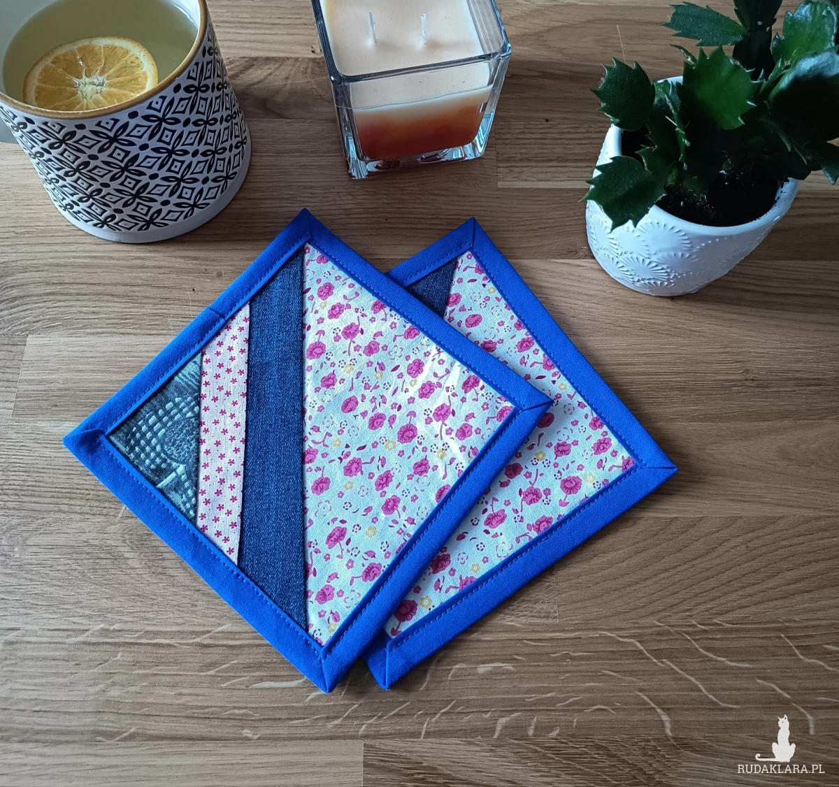 Ręcznie robione podkładki pod kubek – paczworkowe.