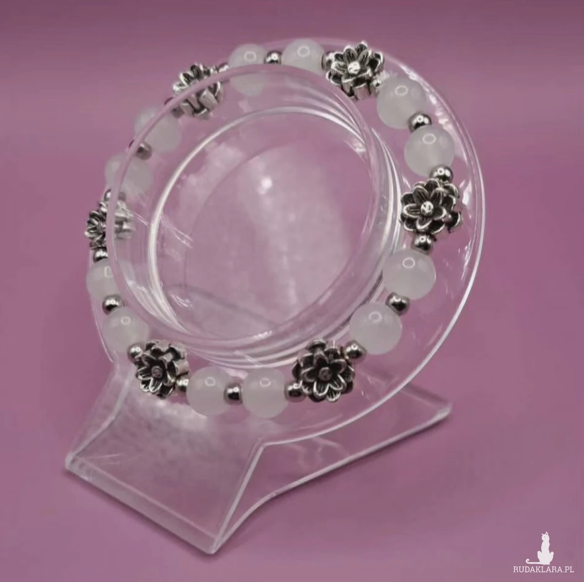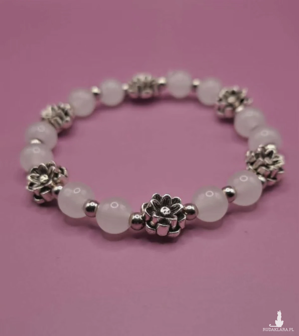 Zapraszam do zakupu wyjątkowej, ręcznie wykonanej bransoletki, która łączy w sobie delikatność białych koralików z eleganckimi akcentami w kształcie kwiatów. To idealny dodatek dla osób ceniących styl romantyczny, boho lub minimalistyczny.