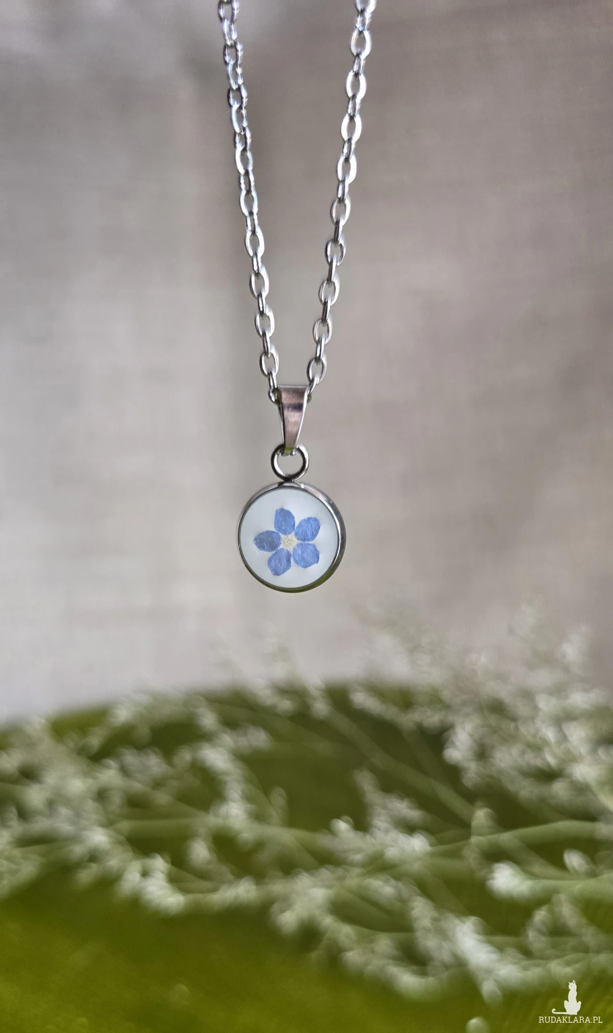 Srebrna zawieszka srebrny wisiorek niezapominajki kwiat naszyjnik żywica z żywicy kwiaty z kwiatami niezapominajka