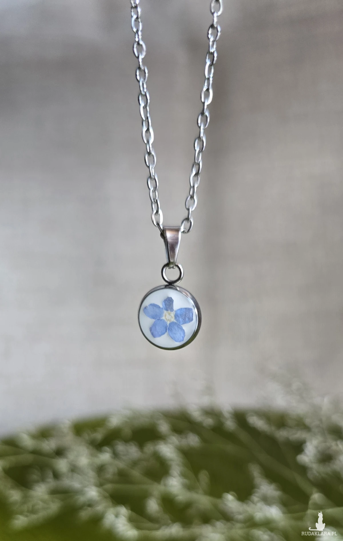 Oferuję Państwu unikalną biżuterię. Zawieszka jest wykonana z suszonych kwiatów i żywicy epoksydowej. Biżuteria jest wspaniałym i oryginalnym prezentem na lata.