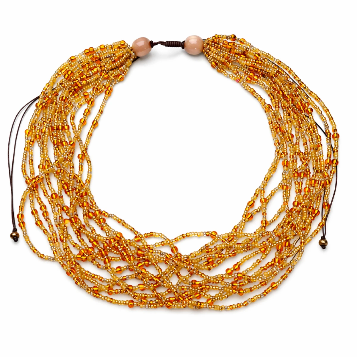 szklane seed beads przypominające naturalny bursztyn. Naszyjnik
