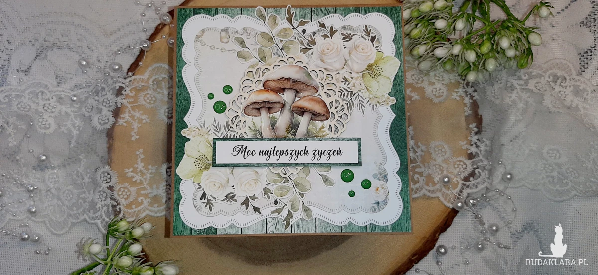 Kartka okolicznościowa, ręcznie wykonana metodą scrapbooking na bazie kraftowej. Kartka do koperty. Oklejona z każdej strony. W środku znajduje się kartka podklejona taśmą dwustronną na życzenia. Mogę też wydrukować życzenia. Wymiary kartki to 14x14 cm. W zestawie z kopertą kraftową.