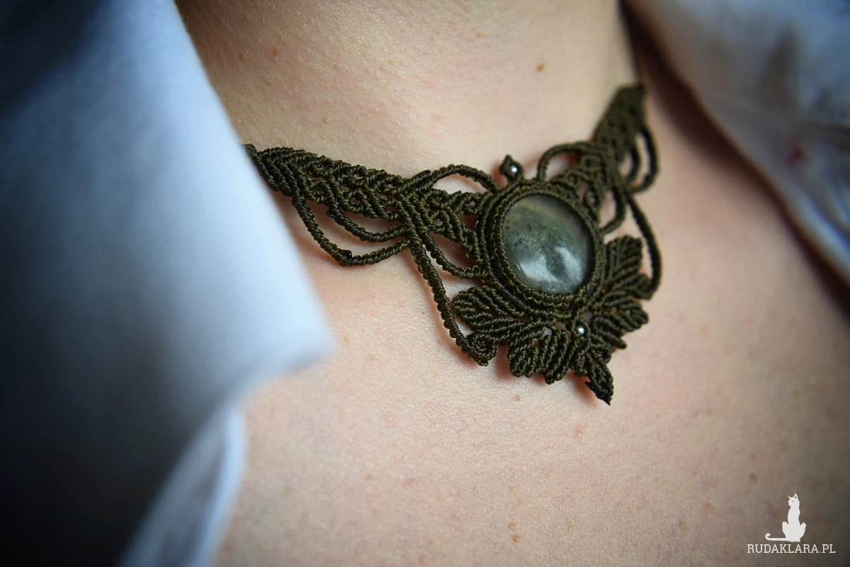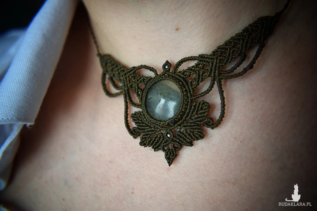 Ręcznie wykonany naszyjnik w technice mikro makramy, tworzony z intencją harmonii 💚