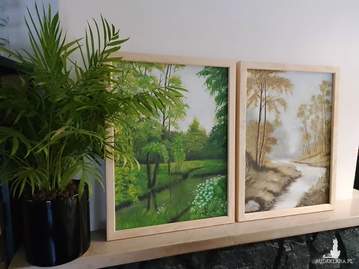 Format: 2 x 40cm x 30cm x 0,5cm (wys. x szer. x gr.) + 2 x ramy sosnowe w odcieniu naturalnym