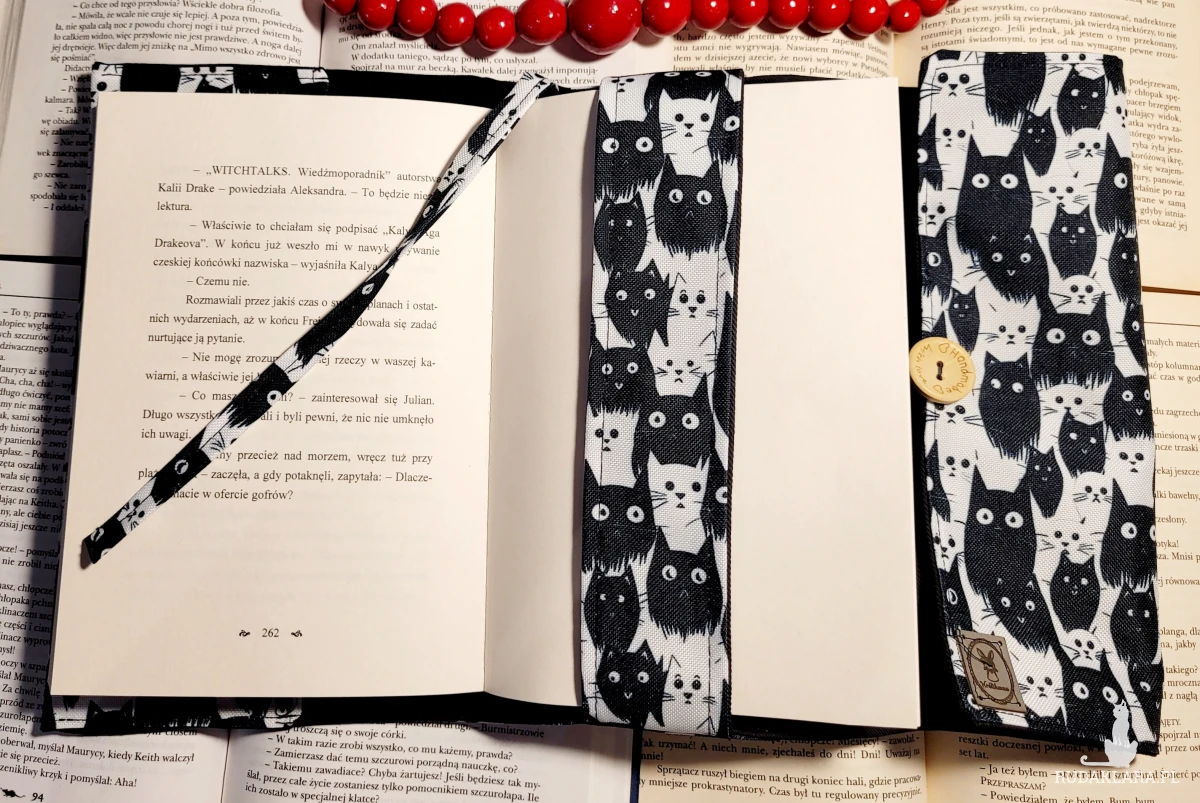 - zapięcie na gumkę, dzięki czemu książka się nie otwiera, a okładka dostosowuje się do grubości tomu;