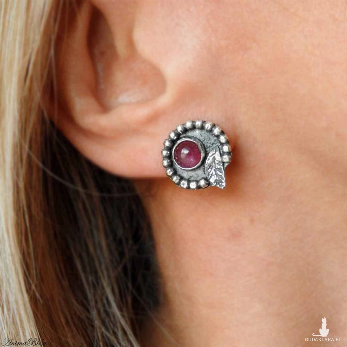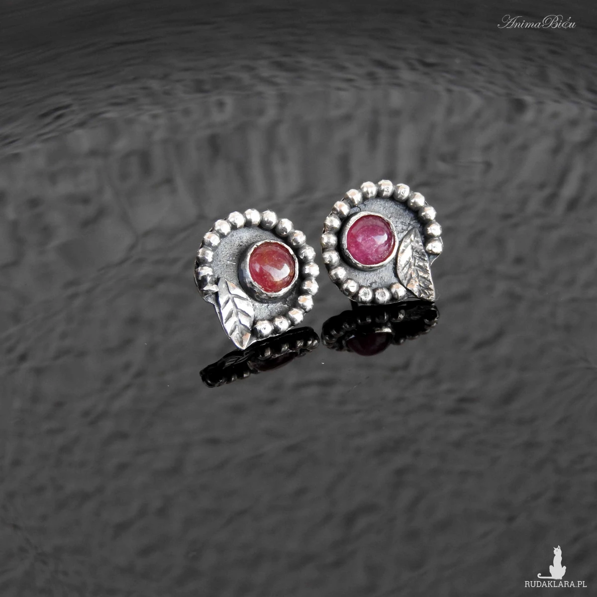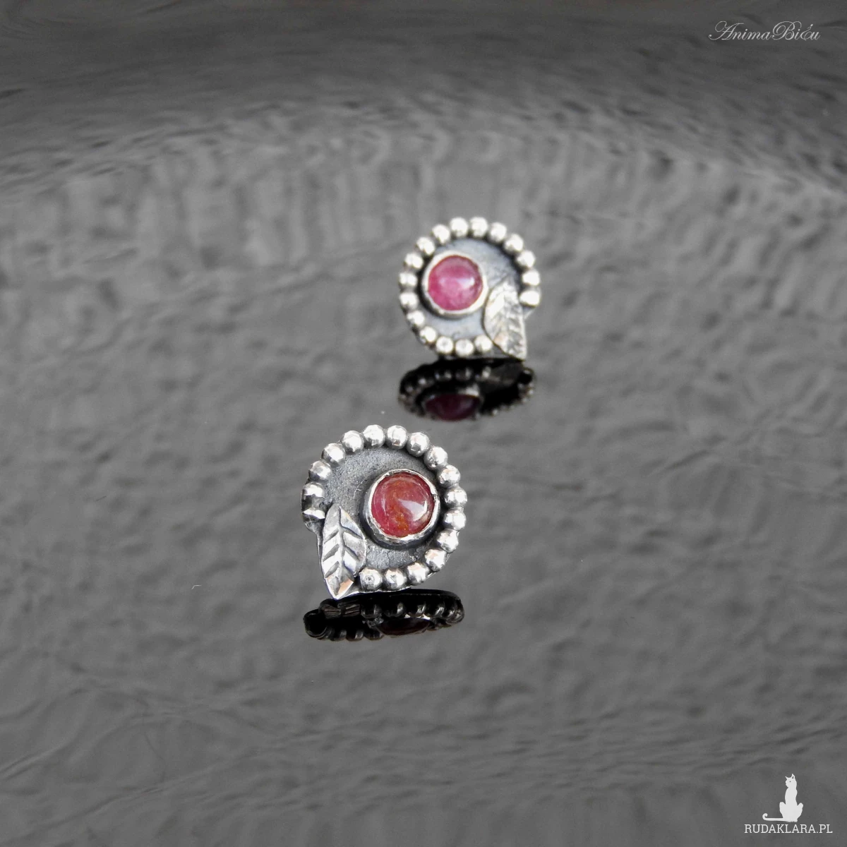 Kolczyki srebrne typu wkrętki z różowym turmalinem. Kolczyki