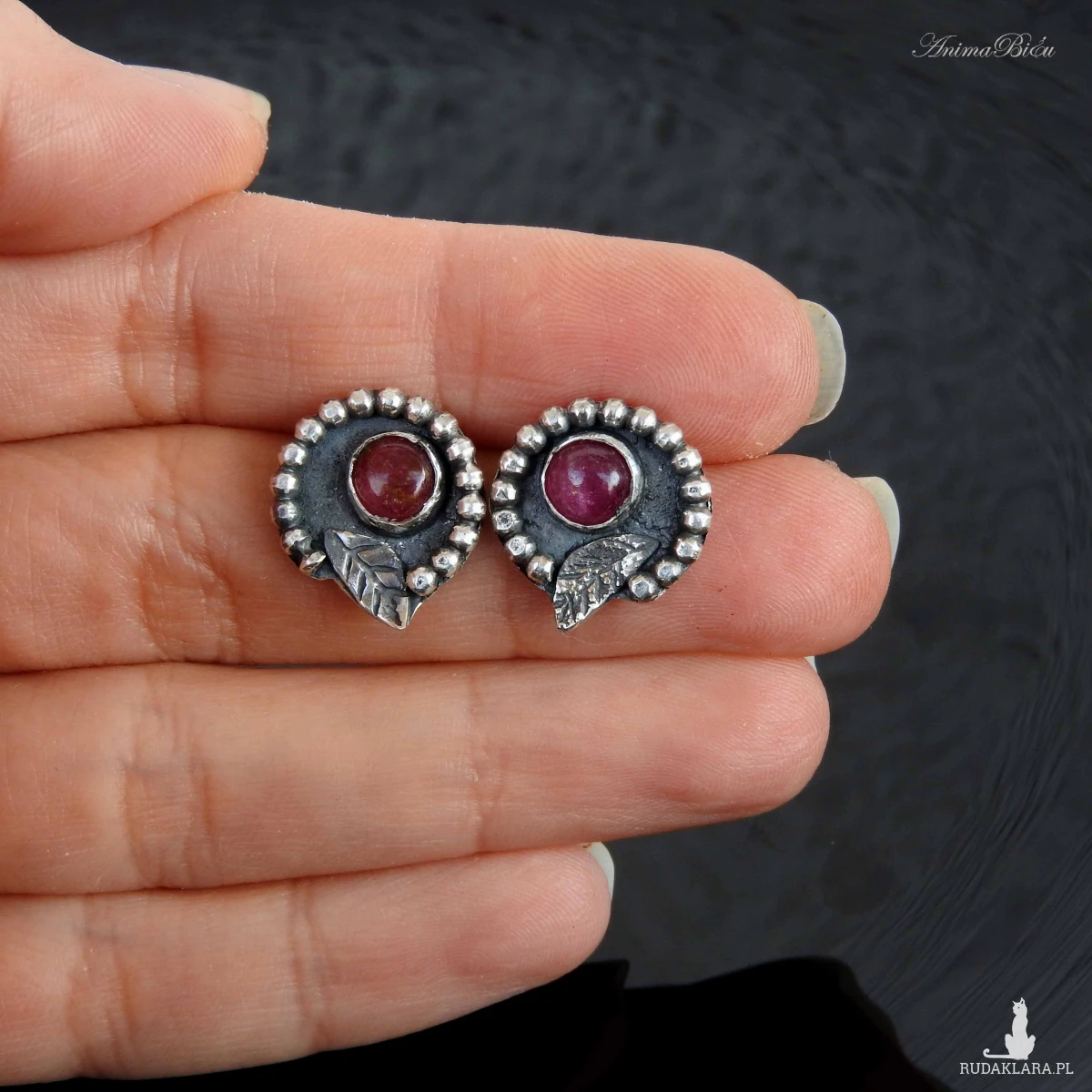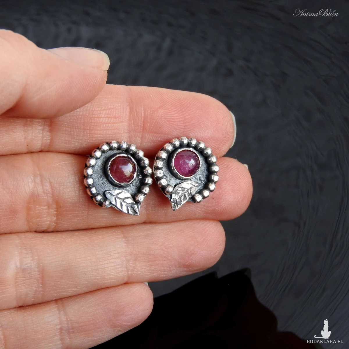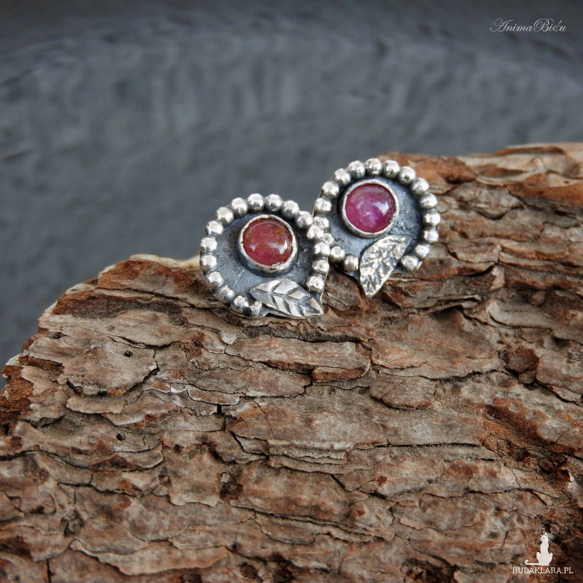 Kolczyki srebrne typu wkrętki z różowym turmalinem. Kolczyki