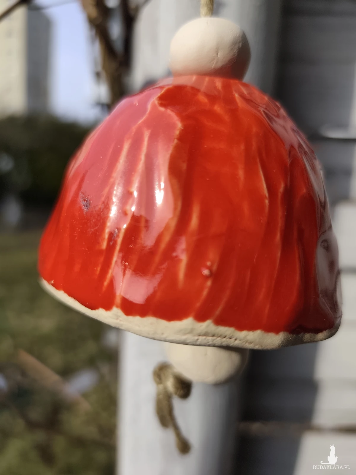 Uroczy dzwoneczek ceramiczny. Piękny dodatek do ogrodu lub na balkon. Polecam. Wykonany ręcznie, szkliwiony i dwukrotnie wypalany w piecu ceramicznym na wysoką temperaturę.