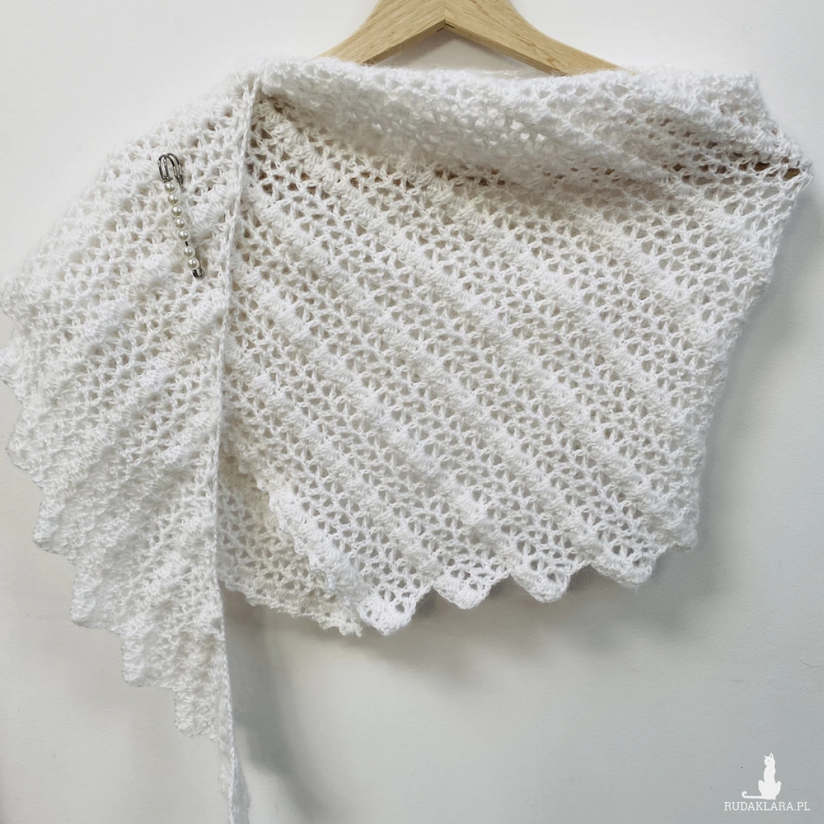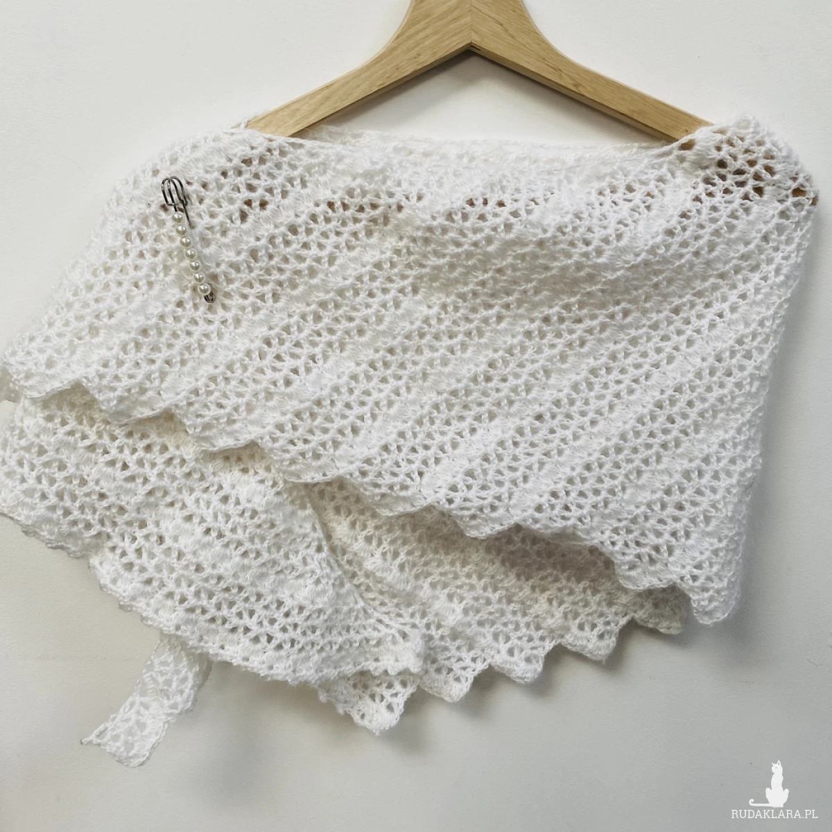 Delikatną, lekką etolę ślubną wykonałam ręcznie na szydełku z miękkiej włóczki Papatya Angora z subtelnym włoskiem. Klasyczna biel pięknie rozświetla stylizację i harmonijnie współgra z suknią ślubną – zarówno minimalistyczną, jak i romantyczną.