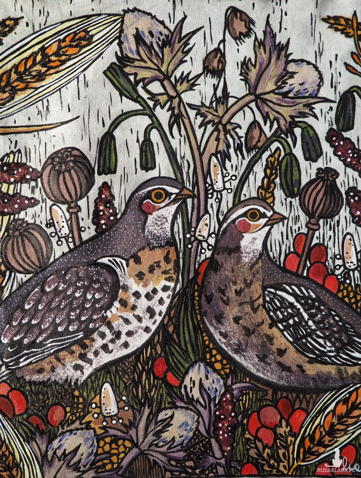 WZÓR: ptaki, kuropatwy, rośliny, zboże, kwiaty