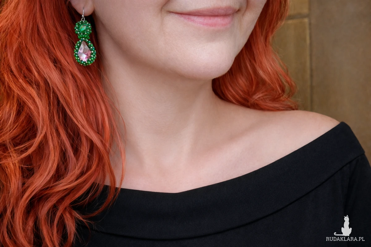 Kolczyki zostały starannie wyhaftowane z wysokiej jakości koralików oraz osadzone wokół błyszczącego kryształowego elementu w kształcie łezki. Precyzyjne wykończenie zapewnia trwałość i estetykę na najwyższym poziomie.
