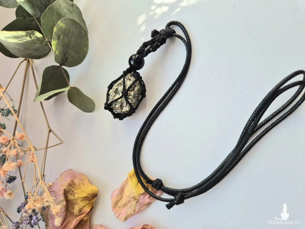 Wisior z pirytem długość regulowane,Piryt pomaga w przyciąganiu pozytywnej energii oraz stymulacji entuzjazmu do życia. Jest on kojarzony z przełamywaniem negatywnych myśli i przyciąganiem do siebie pozytywnych wydarzeń. Piryt ma także zdolność pobudzania kreatywności i inspiracji. Wibracje tego kamienia otwierają umysł na nowe pomysły i perspektywy.box x1