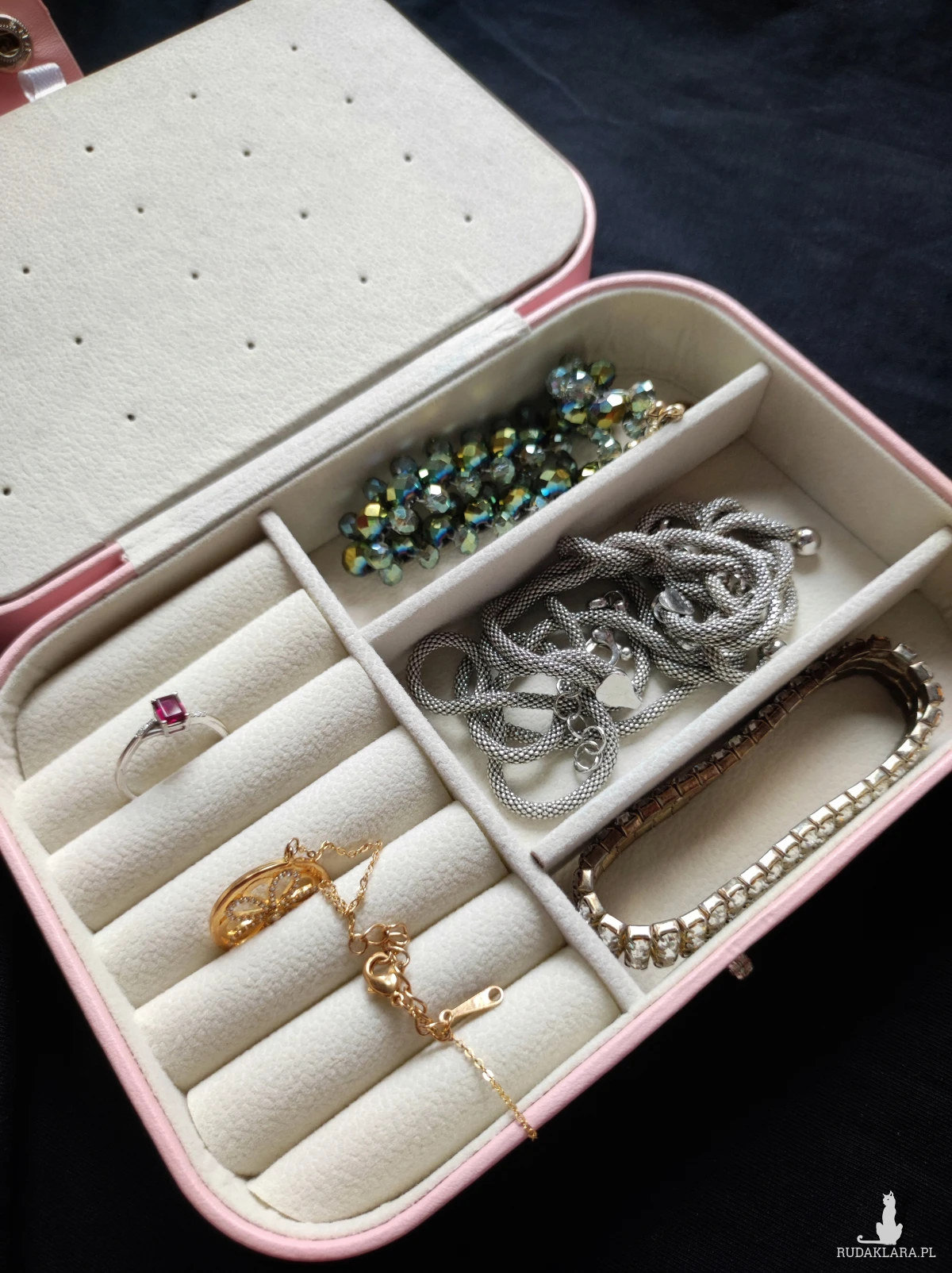 Delikatna wyściółka chroni biżuterię przed porysowaniem.