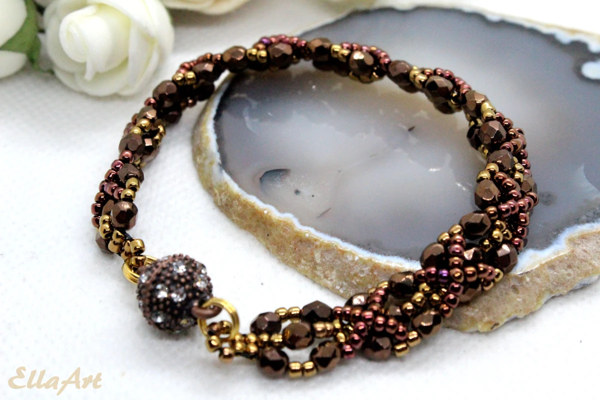 • Bransoletka wykonana ręcznie ze szklanych koralików FirePolish