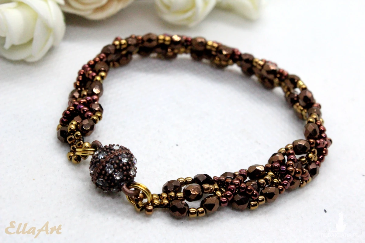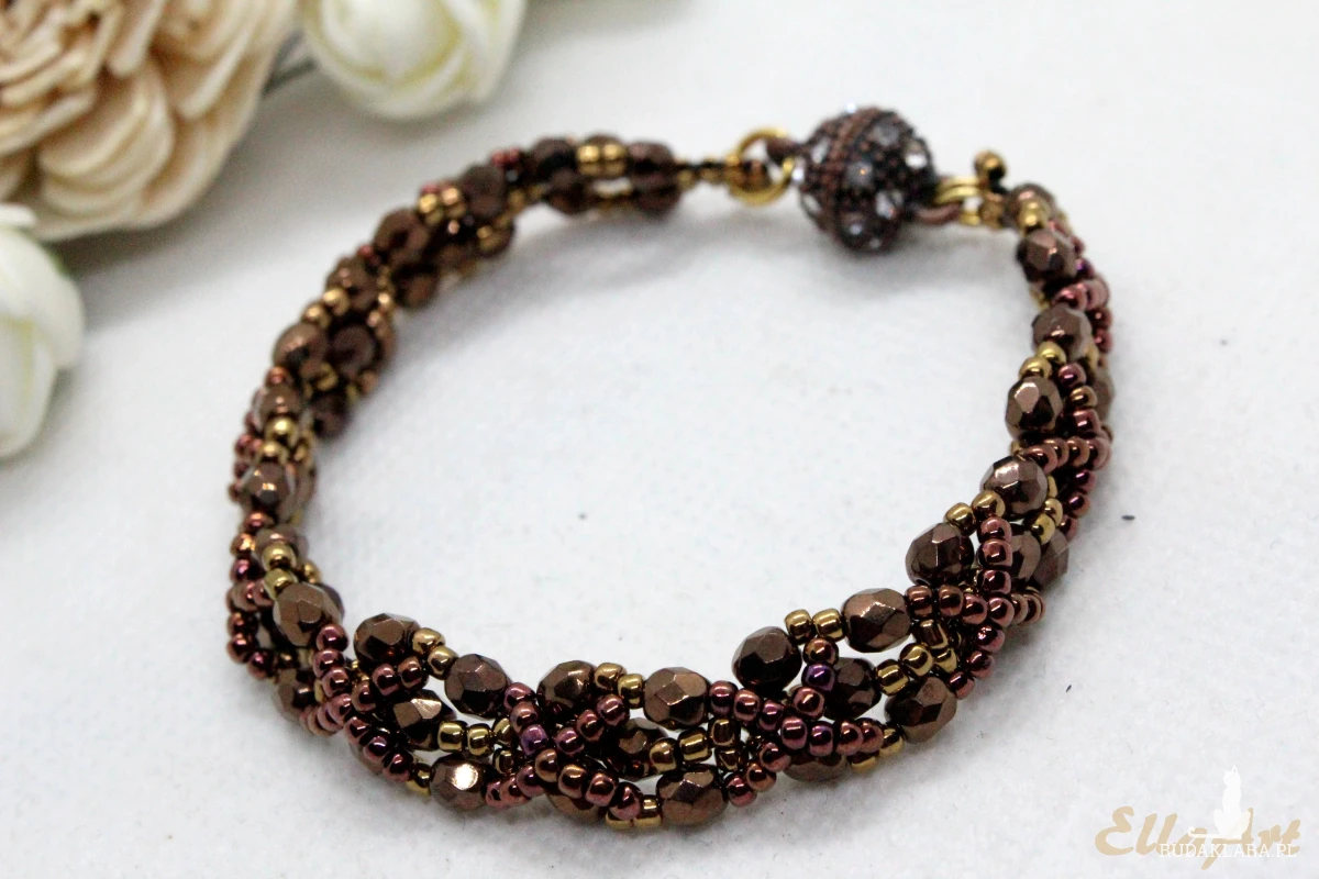 antyczny brąz - delikatna bransoletka z kryształków