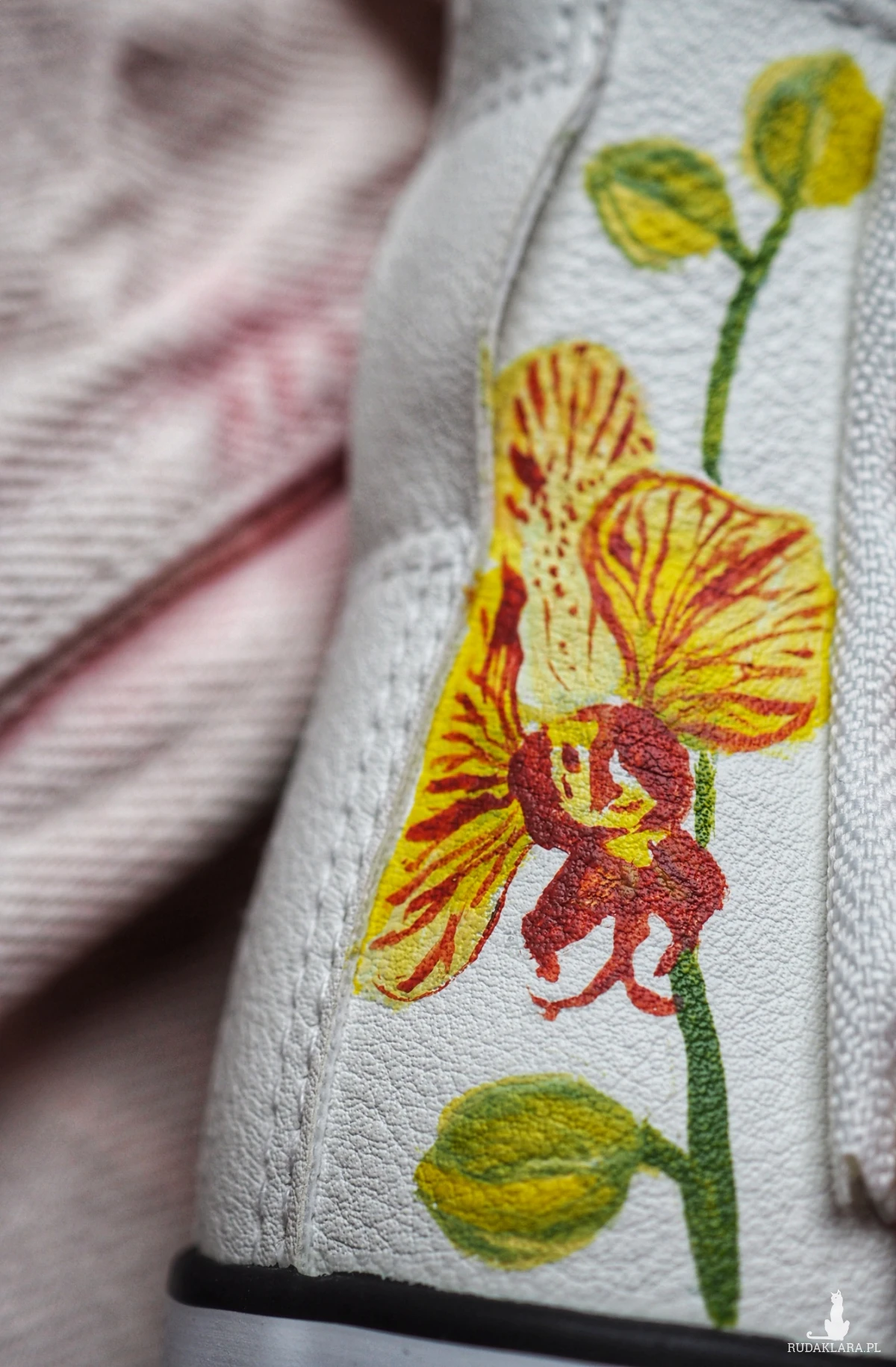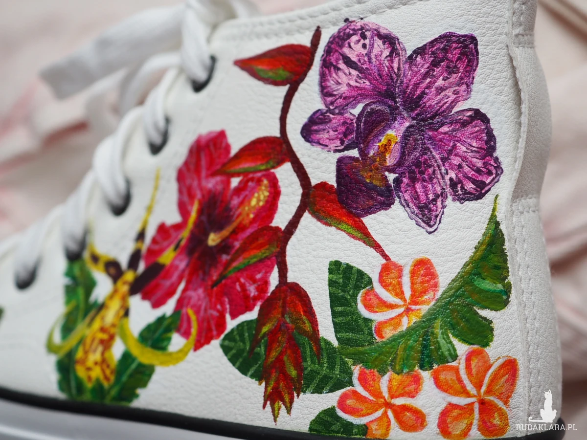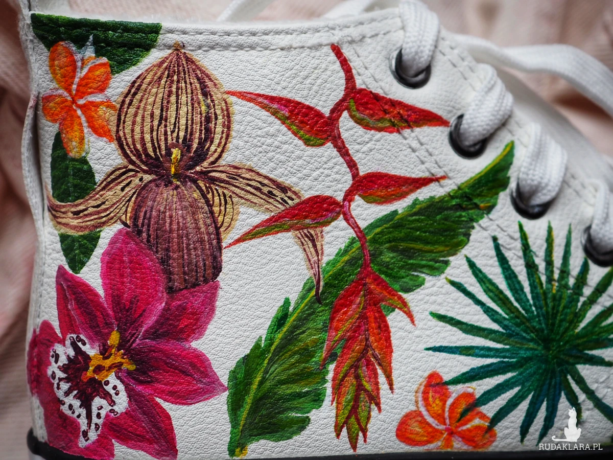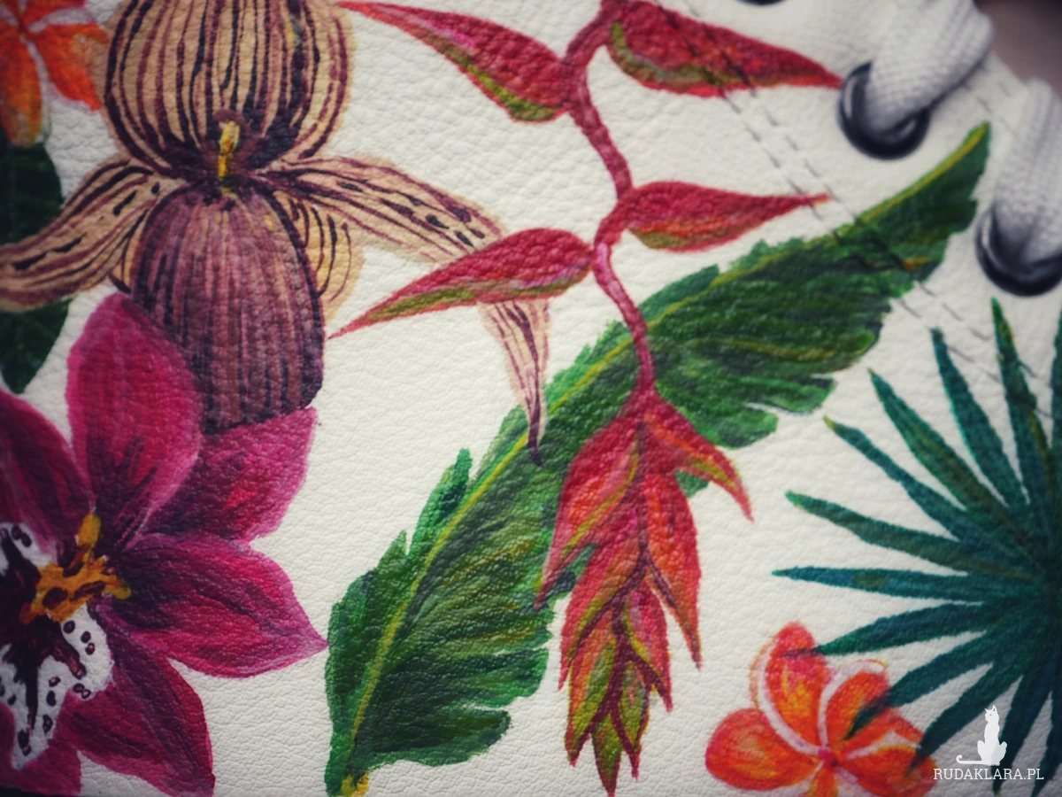 Malunek wykonany został najwyższej jakości akrylowymi farbami do skóry, dzięki czemu jest wodoodporny i trwały.