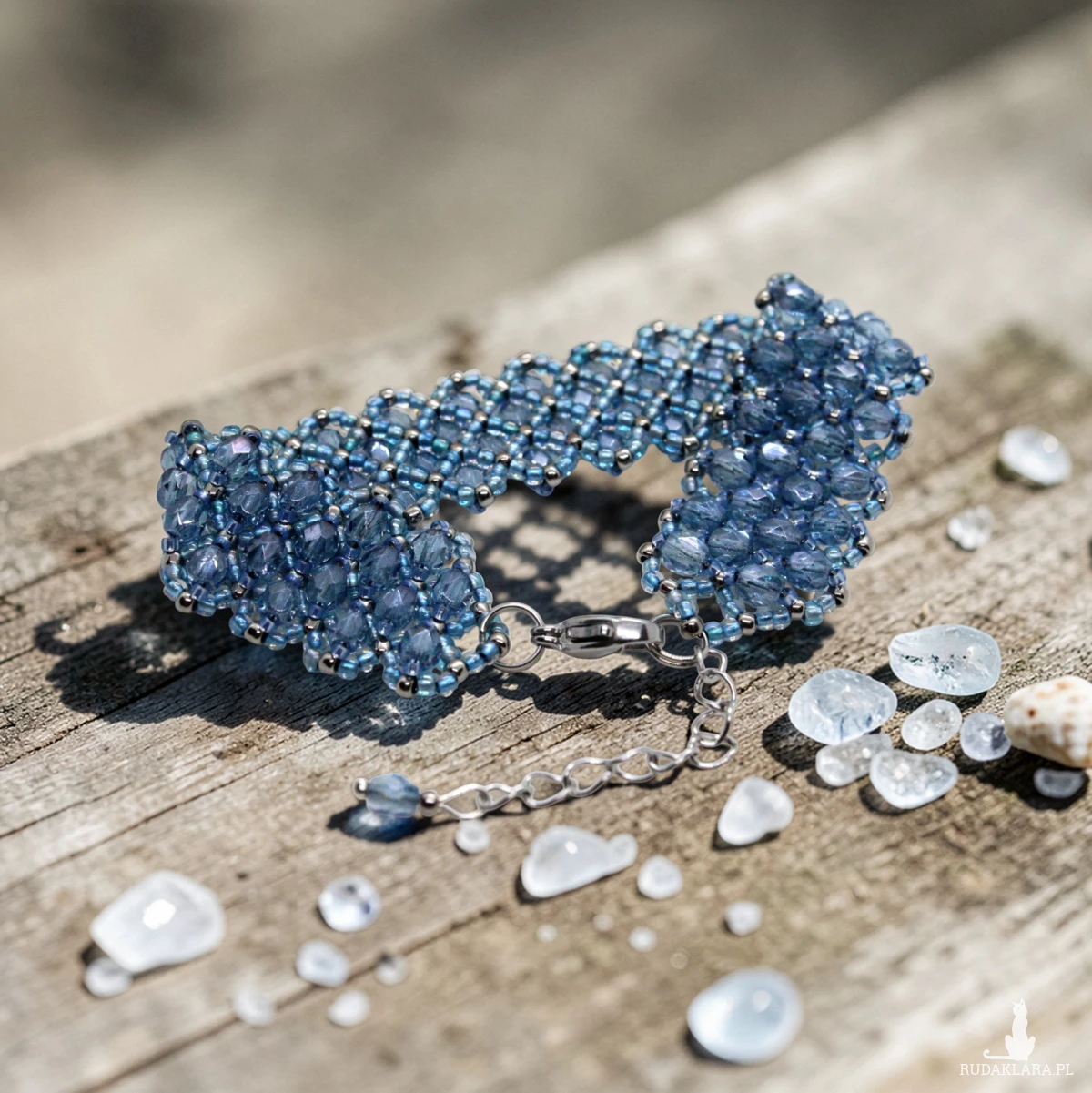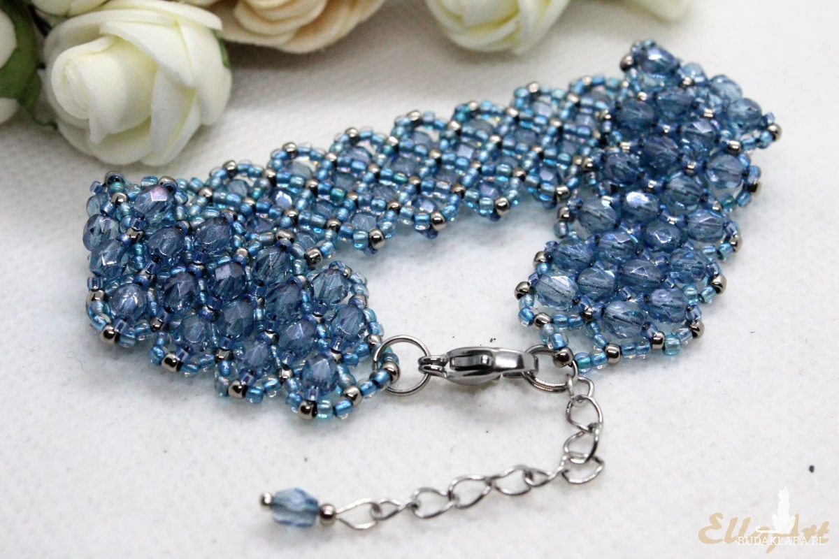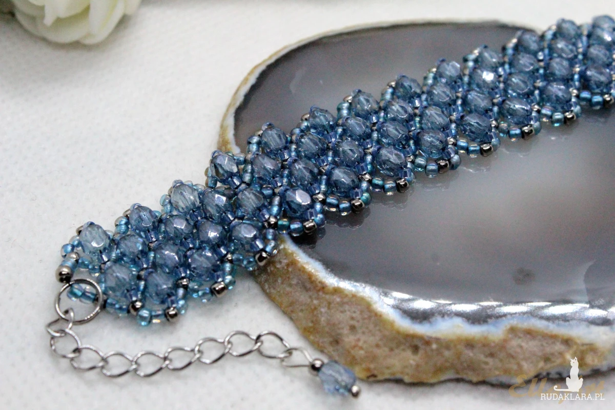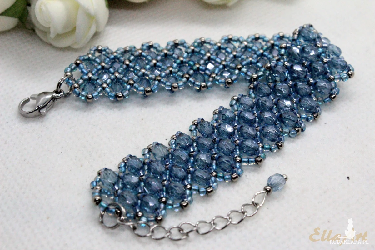 Bransoletka uszyta z kryształków FirePolish 4mm na siatce z koralików japońskiej firmy Toho11.