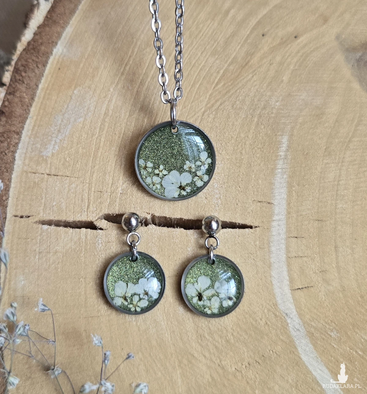 Roślinna biżuteria z żywicy epoksydowej.