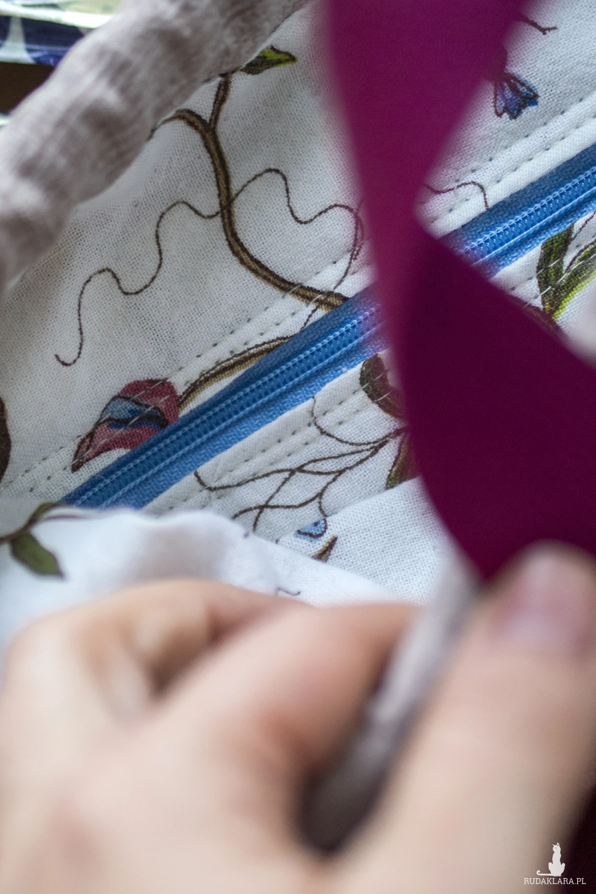 Środek torebki wykończony jest bawełnianą podszewką.