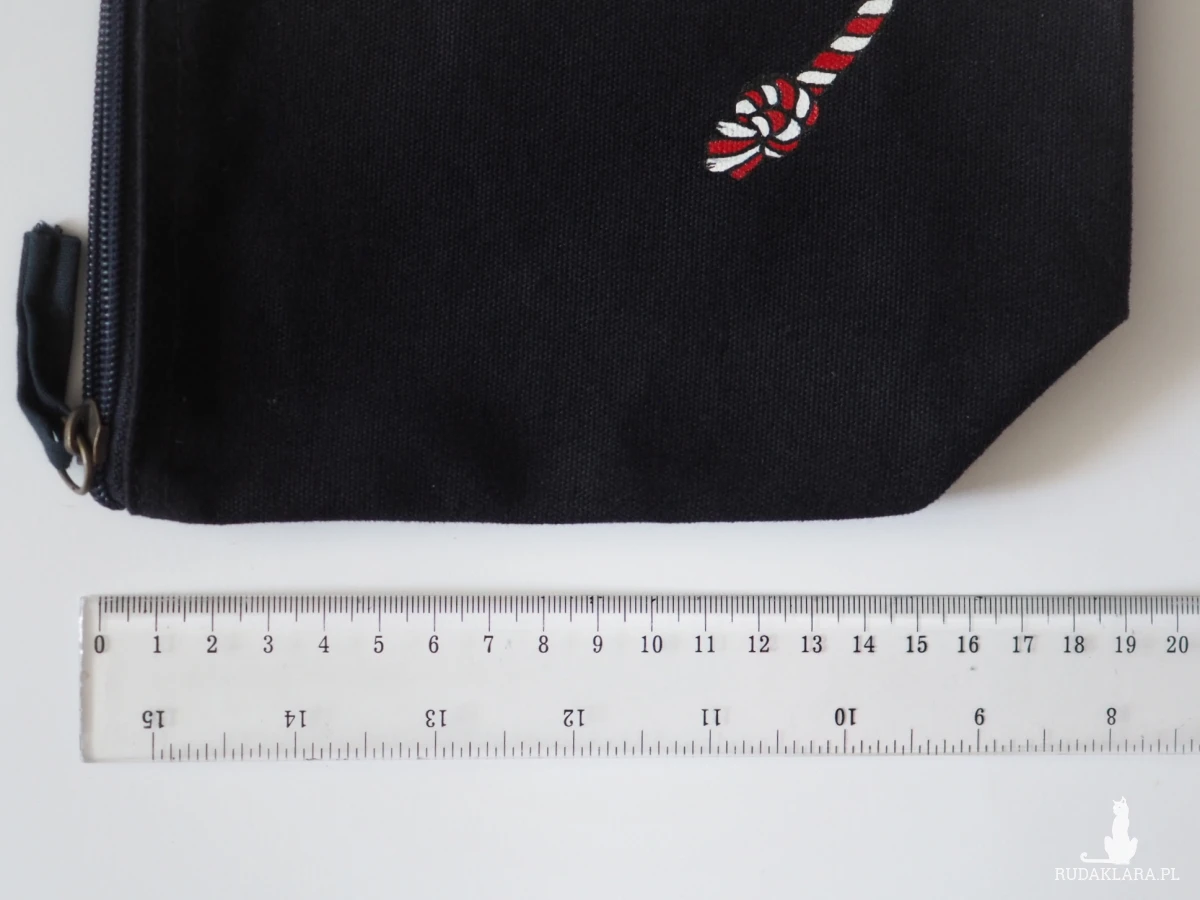 Ręcznie malowana kosmetyczka, z morskim wzorem wykonanym przy użyciu najlepszej jakości farb do tkanin, zapinana na suwak, będzie świetnym schowkiem na kosmetyki, przybory szkolne, drobne gadżety. Pozwoli łatwo znaleźć drobiazgi w podróżnej torbie, noszonej na co dzień torebce czy szkolnym plecaku.