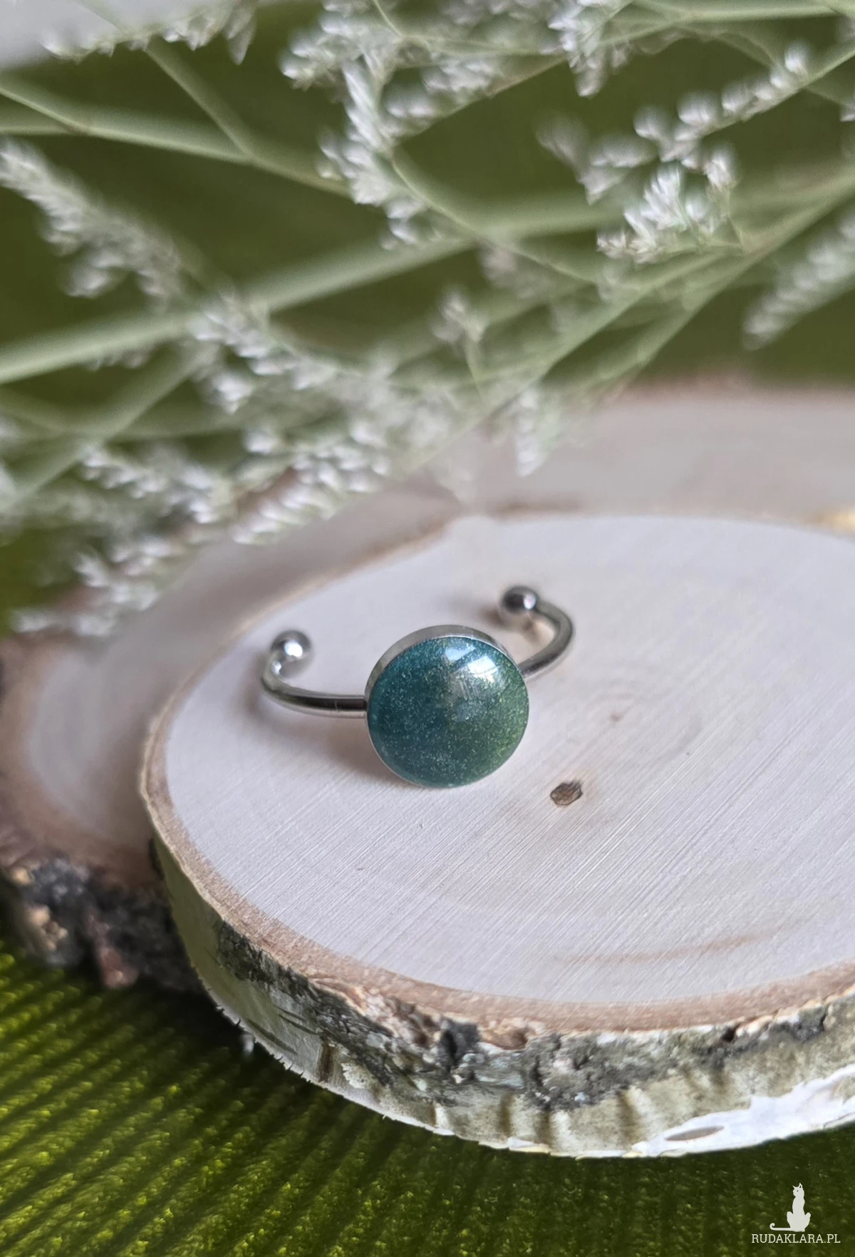 Oferuję Państwu unikalną biżuterię. Pierścionek jest wykonany z żywicy epoksydowej. Biżuteria jest wspaniałym i oryginalnym prezentem na lata.