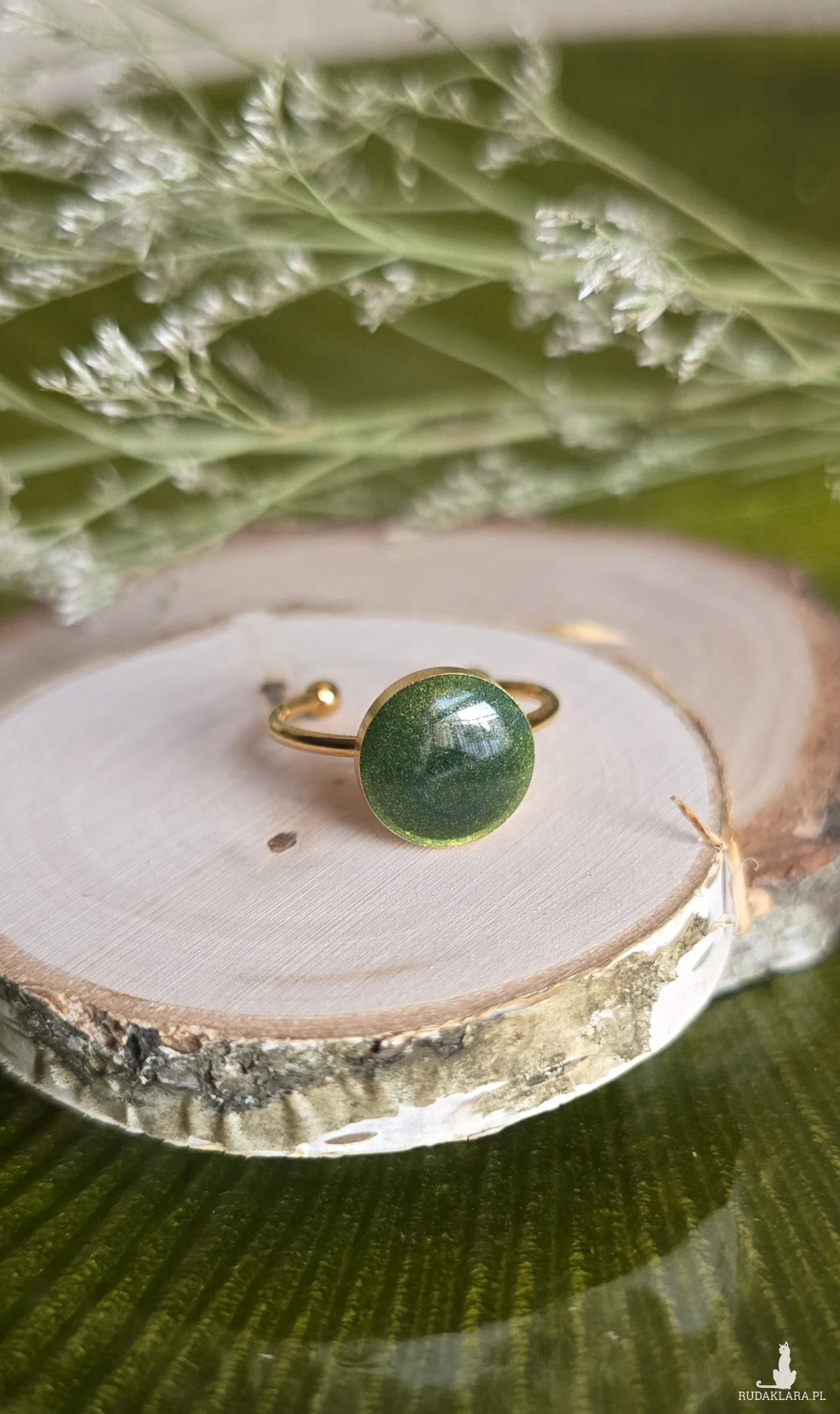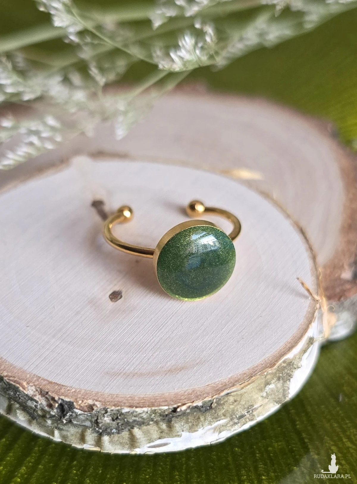 Oferuję Państwu unikalną biżuterię. Pierścionek jest wykonany z suszonych kwiatów i żywicy epoksydowej. Biżuteria jest wspaniałym i oryginalnym prezentem na lata.