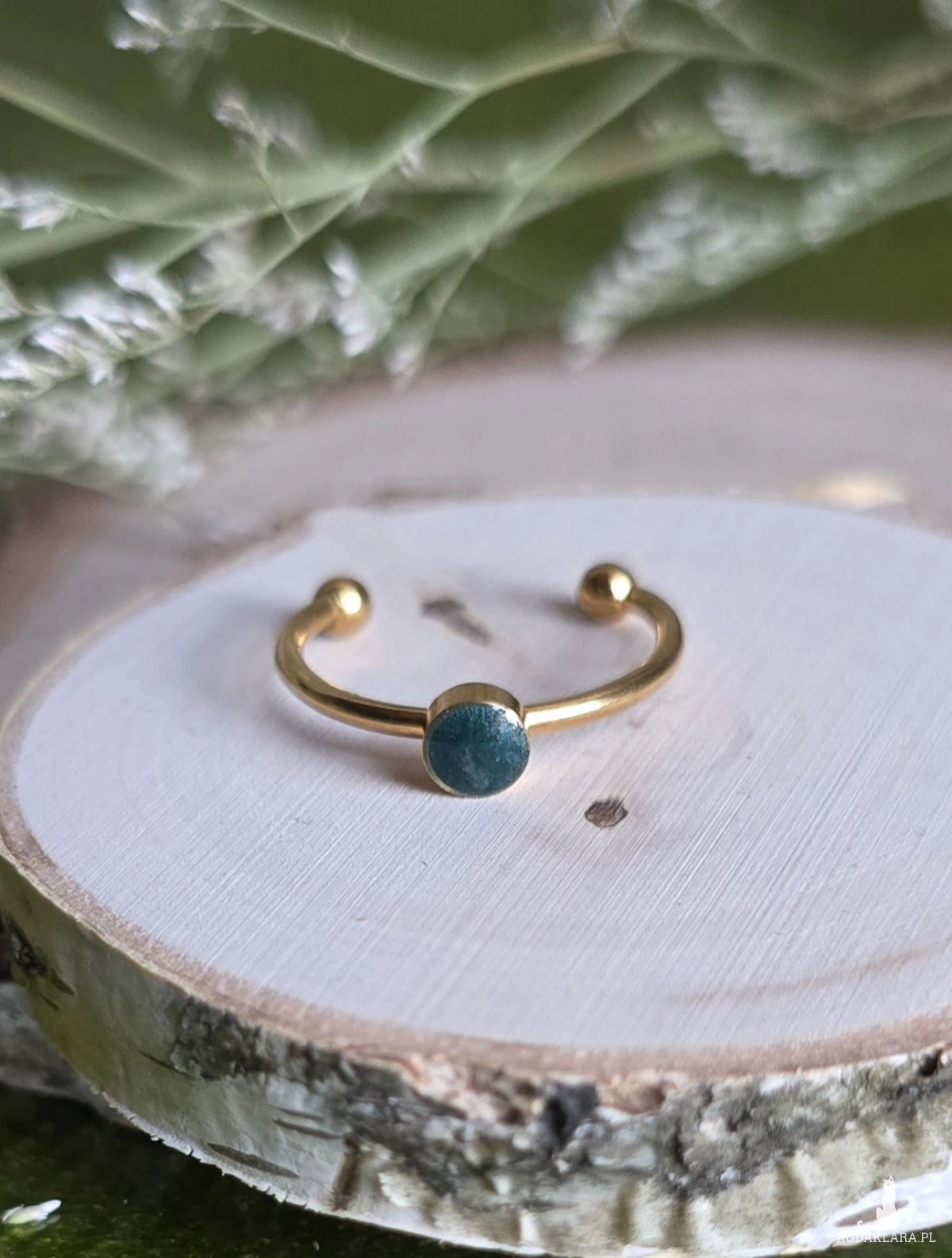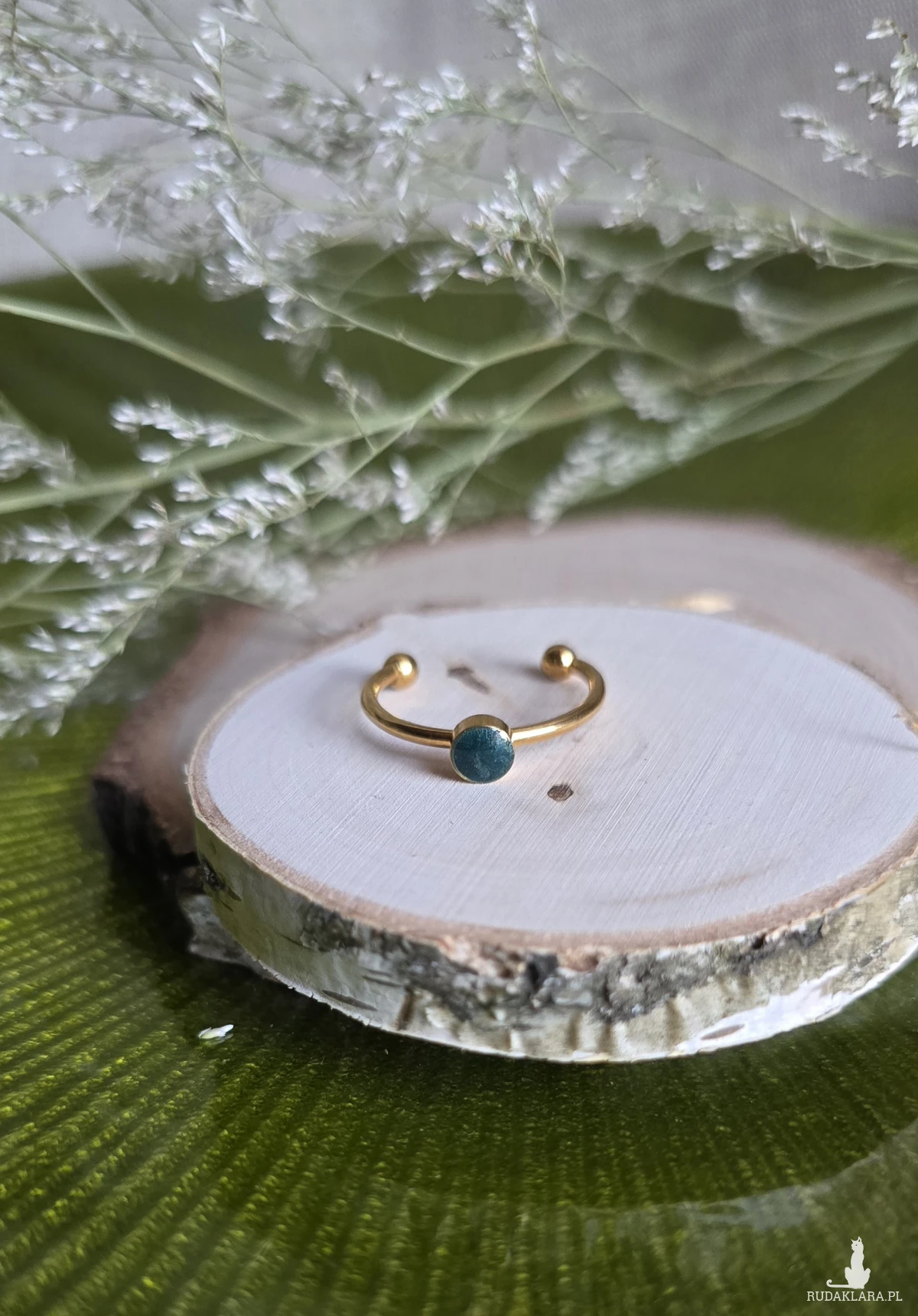 Oferuję Państwu unikalną biżuterię. Pierścionek jest wykonany z suszonych kwiatów i żywicy epoksydowej. Biżuteria jest wspaniałym i oryginalnym prezentem na lata.